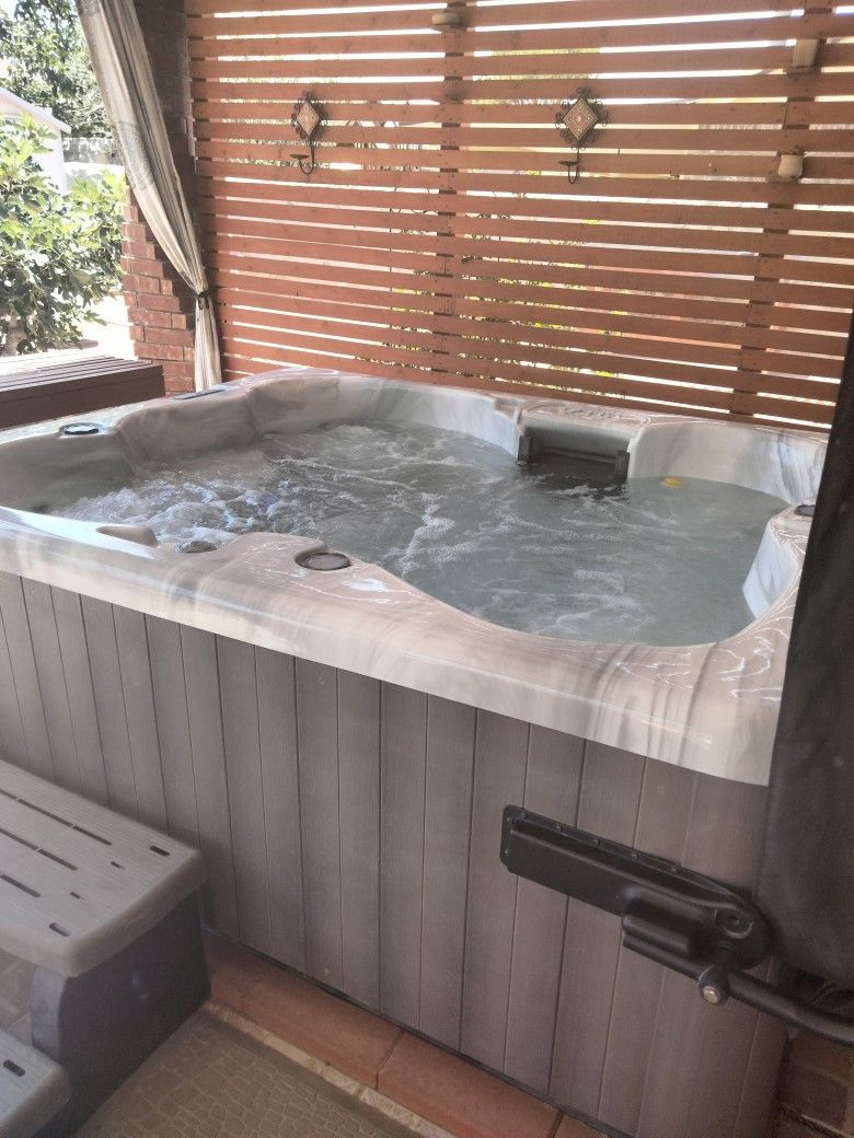 Perfect for year-round relaxation. Soak away stress, enjoy cool nights, or entertain friends and family. Excellent like new condition. Originally paid $6295, asking for $4500. Call (contact info removed) .