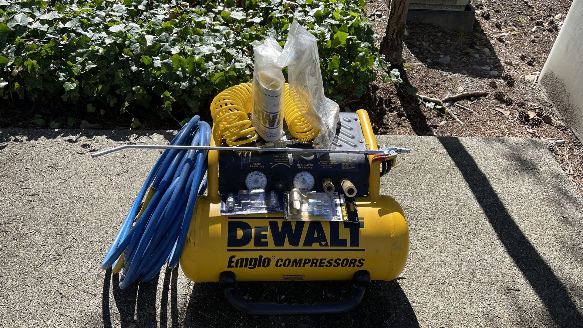 Dewalt emglo air compressor. 4 gallon. Works great. Hoses , adapters, etc. included.