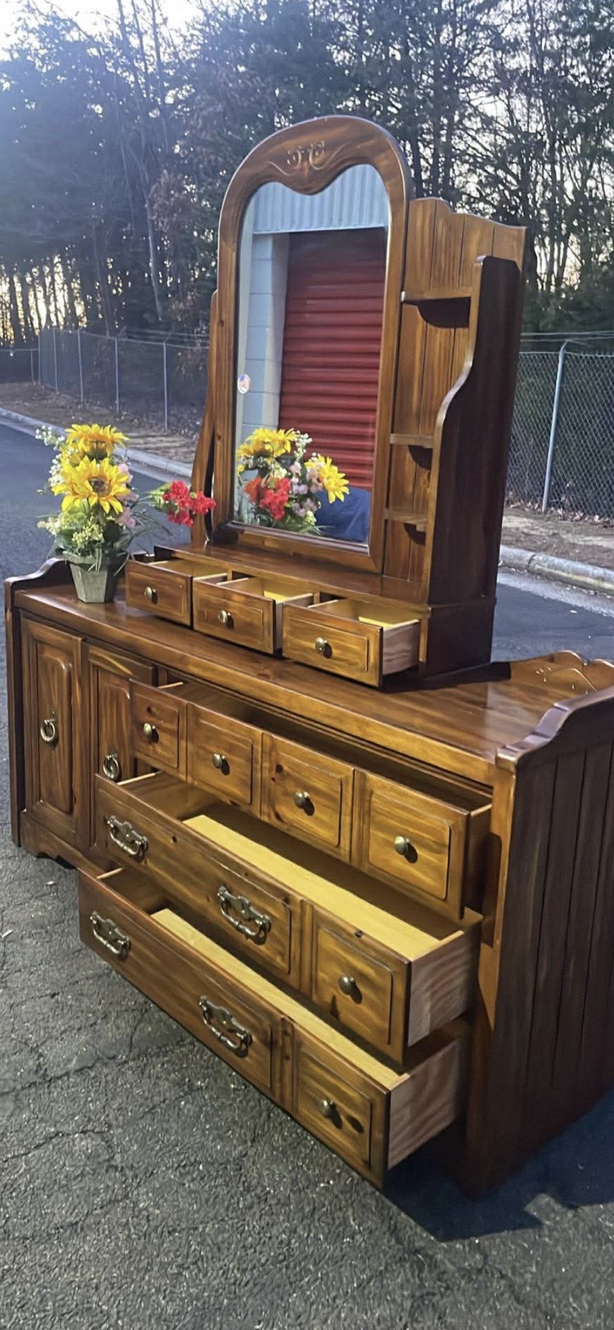 Bassett Solid Wood Long Dresser With Big Drawers, Big Mirror. Drawers Sliding Smoothly. Delivery