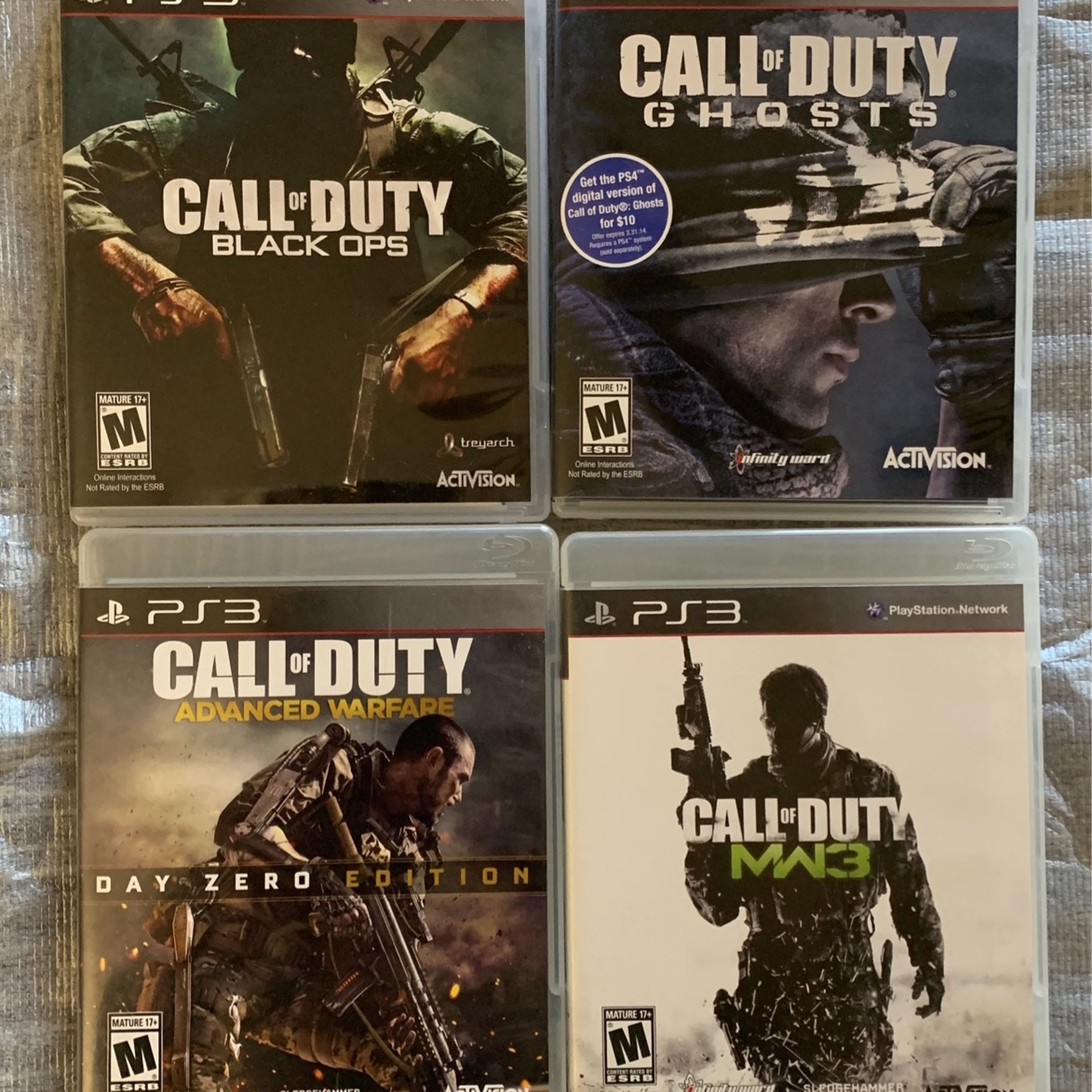 PlayStation PS3 games 1. Call of duty black ops 2. Call of duty ghosts 3. Call of duty advanced warfare- zero day edition 4. Call of duty modern warfare 3 Pickup only