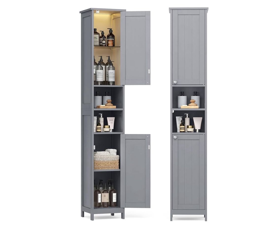 New in box Tall Storage Cabinet with Lights, Slim Freestanding Cabinet with Adjustable Shelves, for Small Spaces, Bathroom, Living Room, Modern, 11.8 Inches Wide, Dove Gray UBBC566G02