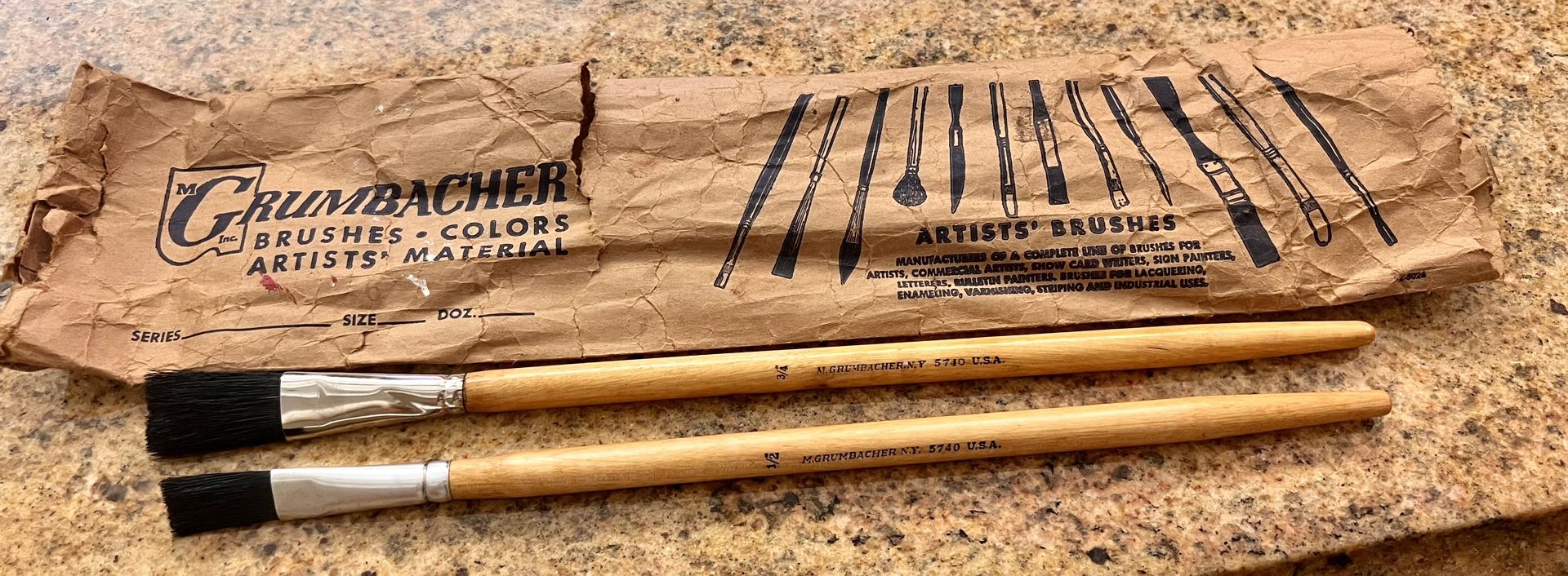 Vintage Art Supplies M Grumbacher Brand New 2 Brushes in Original Package