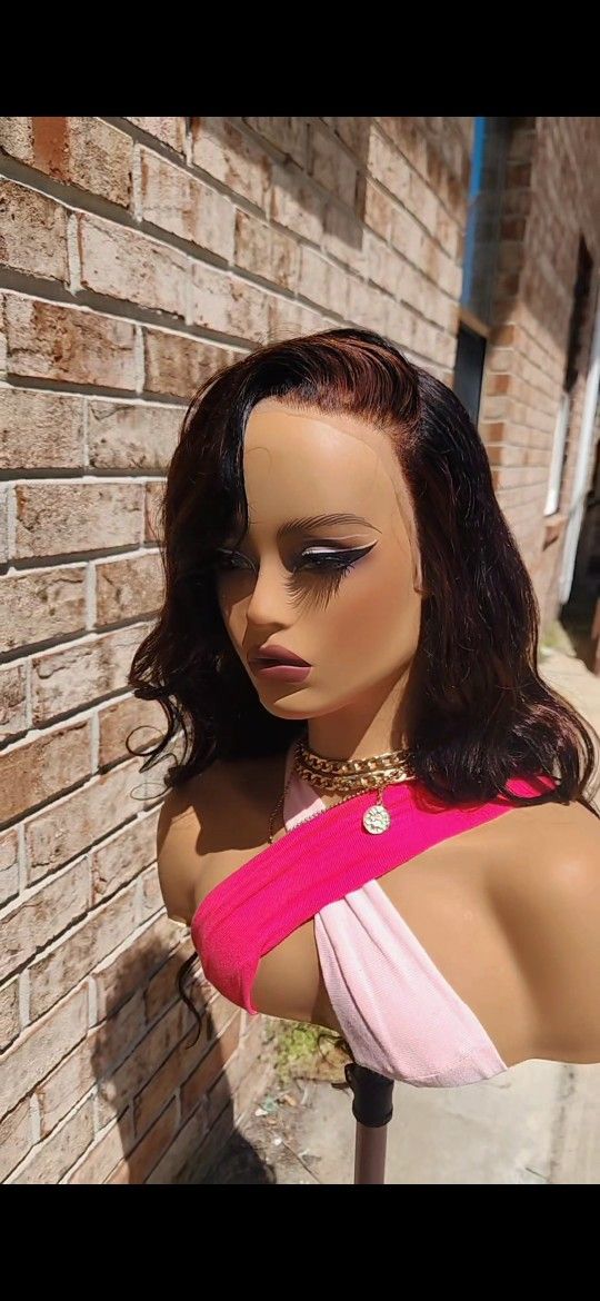 Beautiful thick lace front, A 100%. Malaysian human hair. Custom colored with chocolate highlights