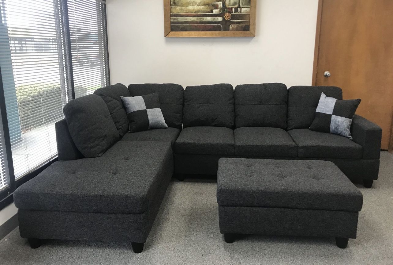 Brand new still in packaging with decorative pillows and storage ottoman included this is display picture Delivery to all areas