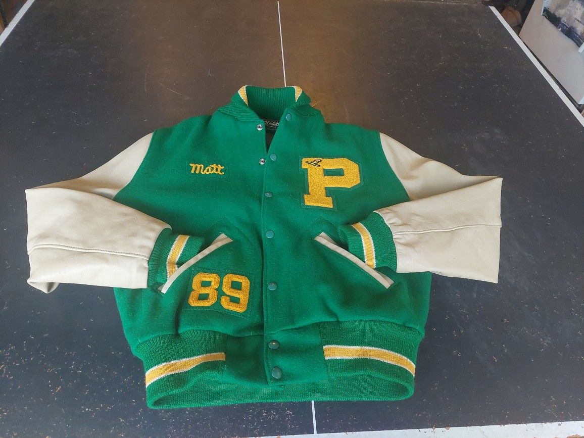 Size 40 Great shape. Could be used for putnam, west linn, estacada. Pretty much any green and gold or white team. I can remove any of the lettering or numbers. Just sewn on