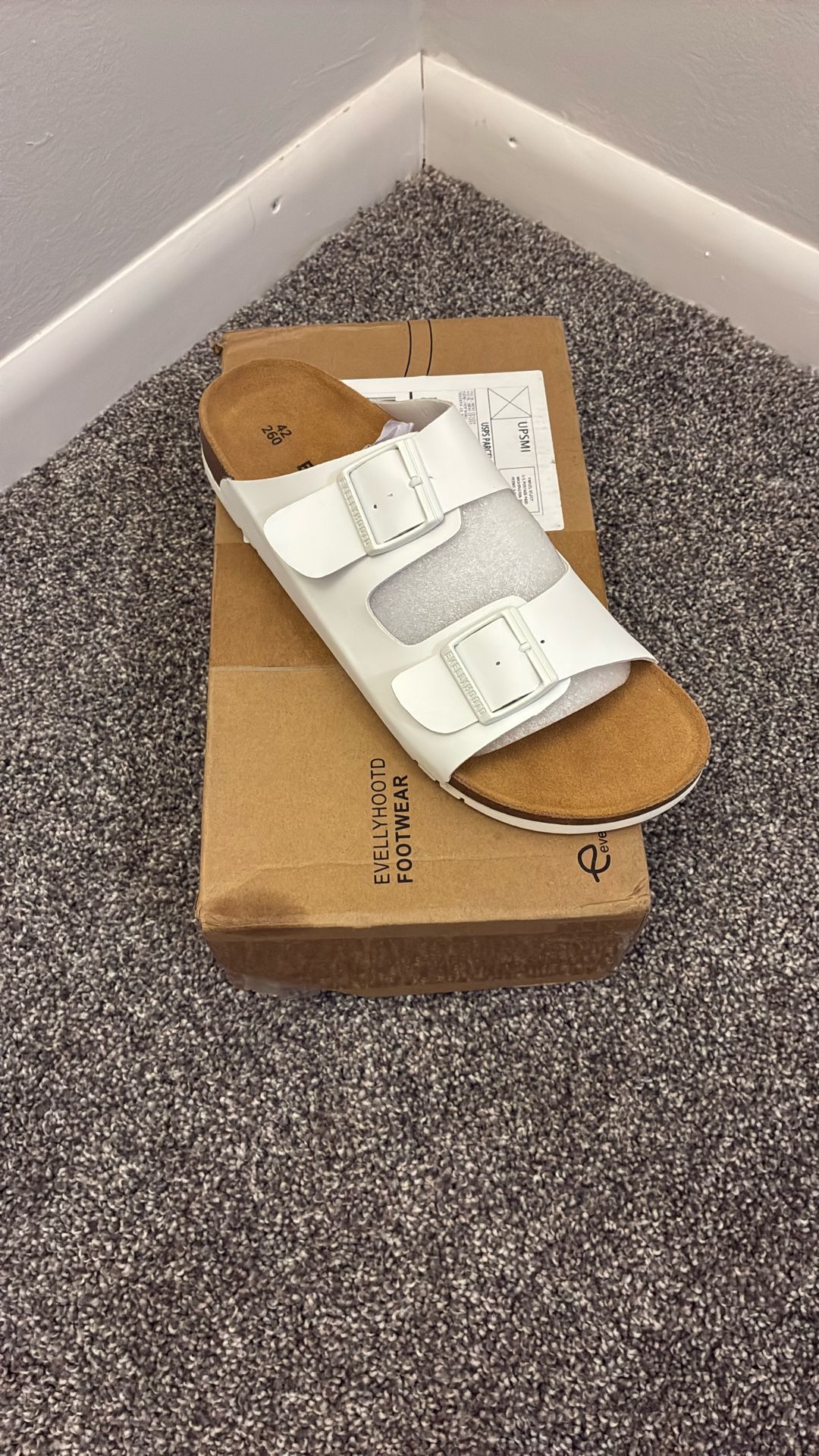 NEW IN BOX Evellyhootd Dual Buckle Slides White Size 11 ( Europe 42 )