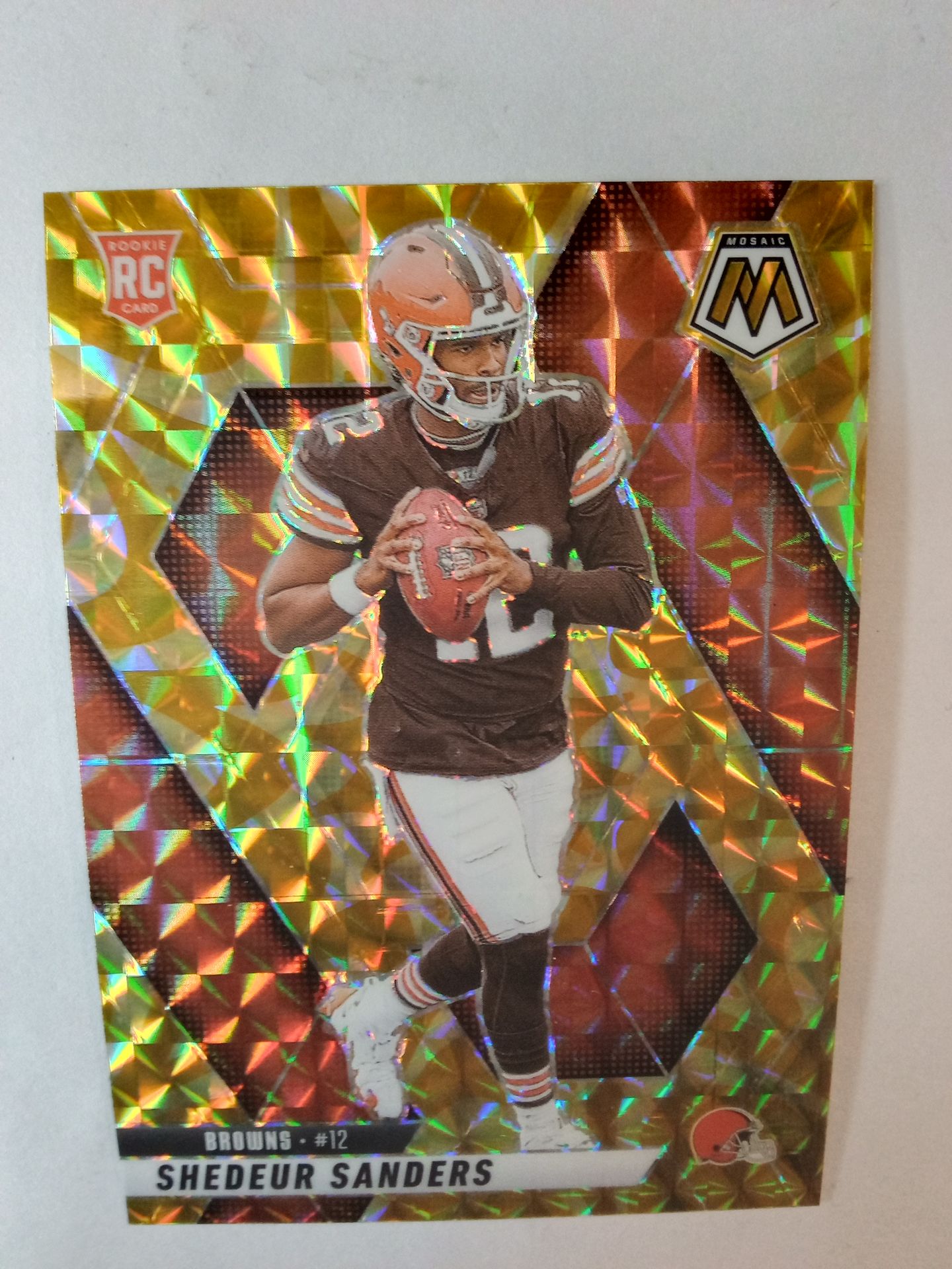 2025 Shedeur Sanders panini mosaic gold #302 Rookie card.