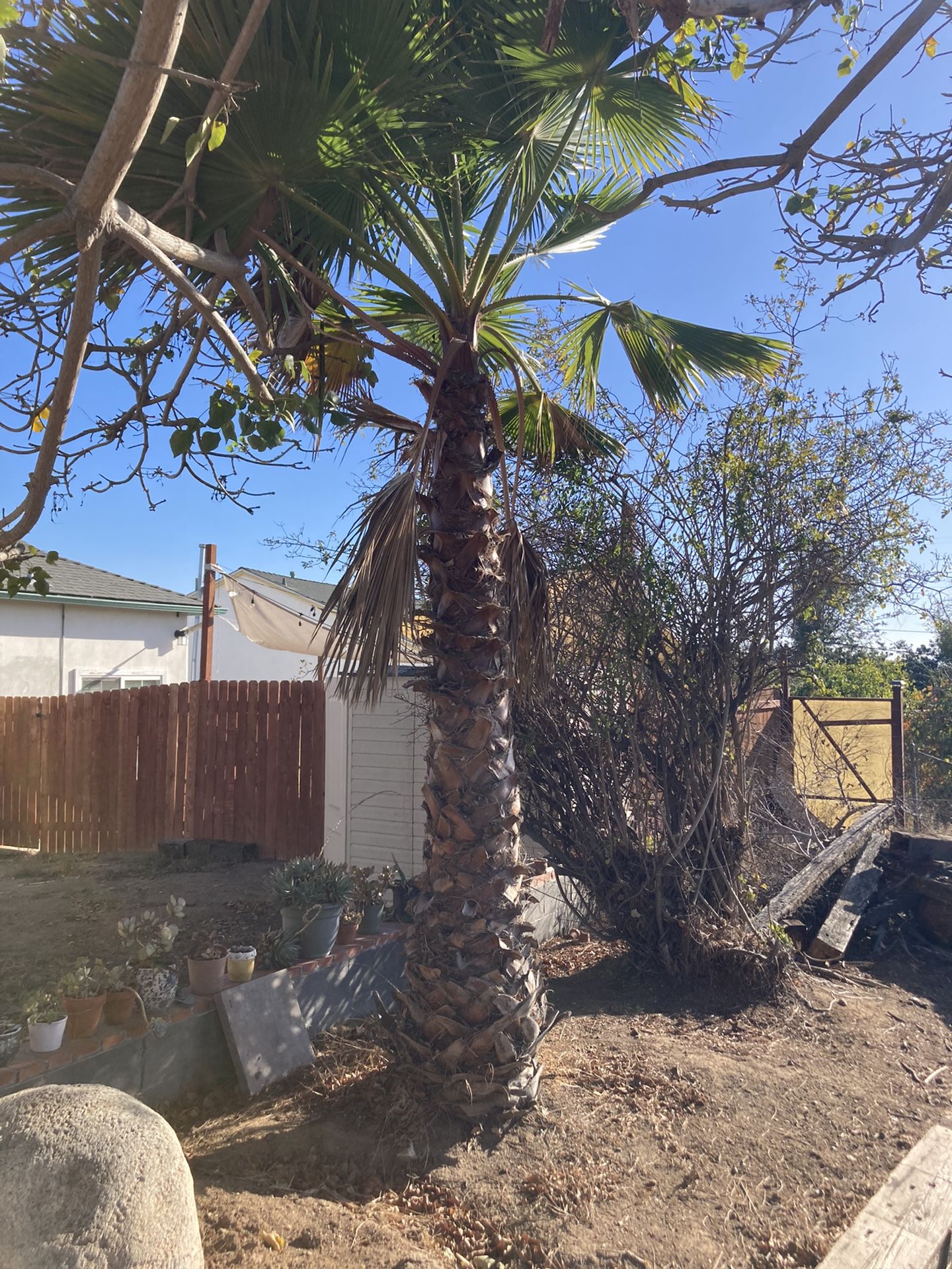 Need to remove this palm tree from the yard. It is about 18 inches wide at the base, and about 10 feet high where the palm fronds start to bloom. If you can dig it out and haul it away without damaging the rest of the yard, you are welcome to take it. It seems to be very healthy and gets plenty of new friends all the time. It is in the backyard and must be taken out of a side gate that is only about 4 feet wide