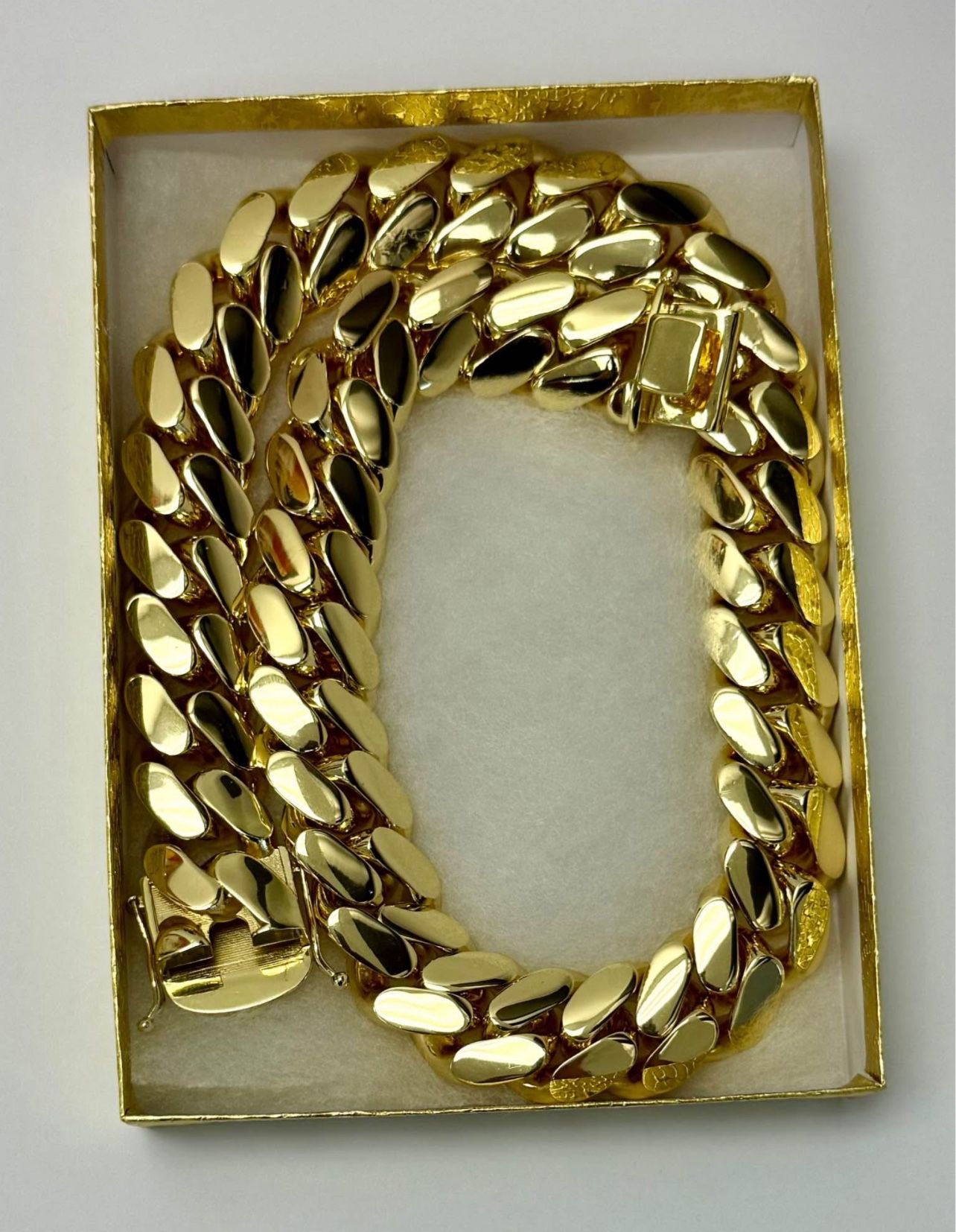 20mm Miami Cuban Link Yellow Gold Plated Bracelet 18k & 14k Crab Old School Regular Lock