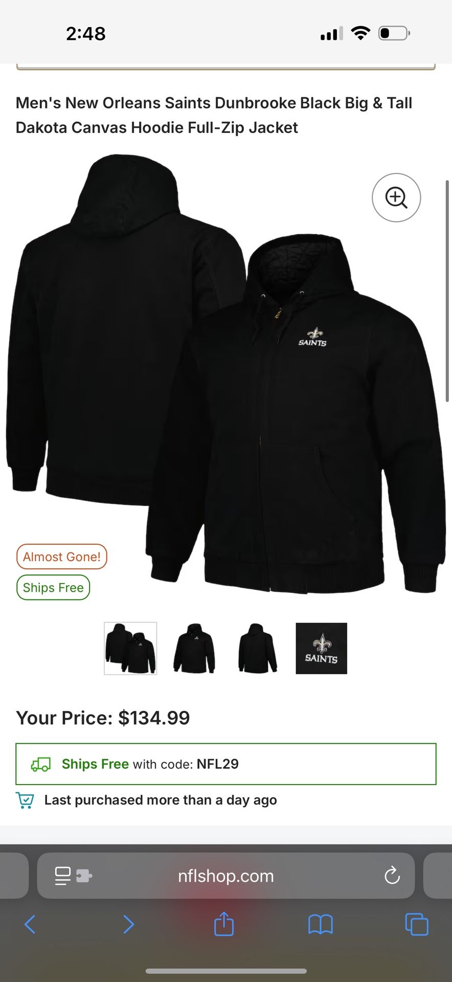 NFL Saints Dunbrooke Canvas Hooded Quilted Canvas Jacket