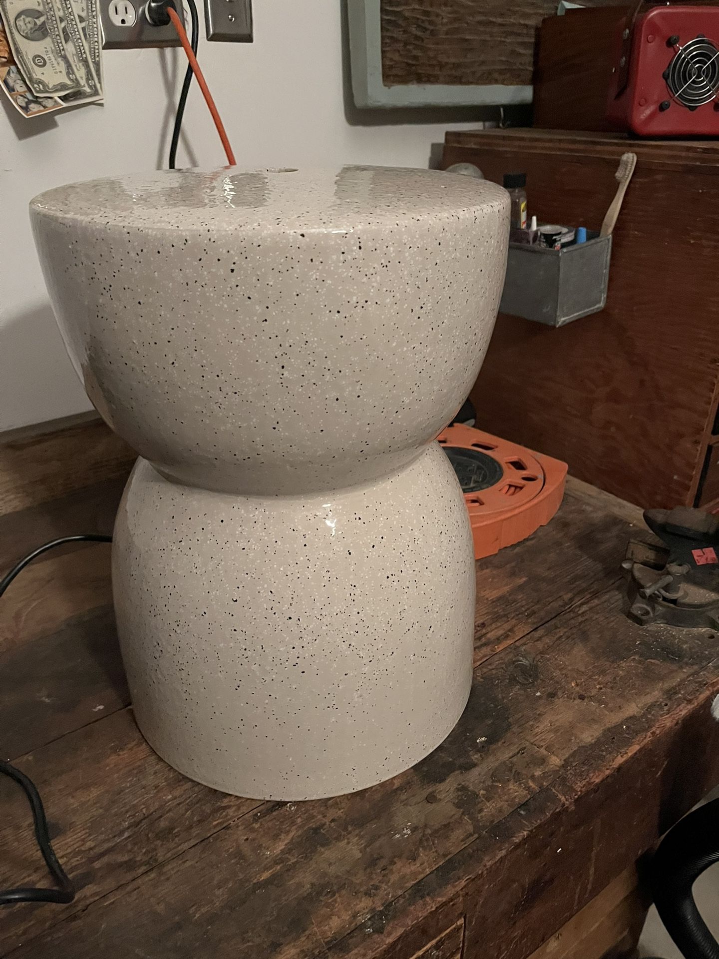 Very well made. The top is not flat-it’s slightly sloped-so it wouldn’t work as a table top but you could prob put a large plant on it. Asking $20 cash only! 17” tall 12.5” wide