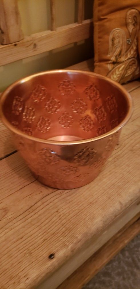 Never used. Made in India. 9 diam. 7 tall. Nice stamped design