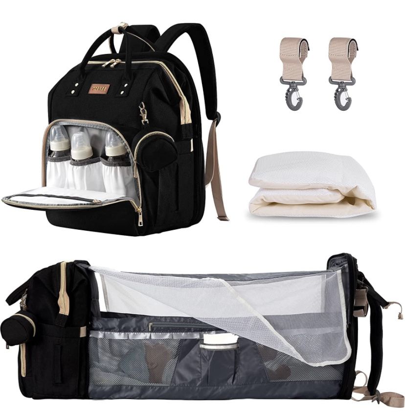 Nice Black Diaper Bag. Comes with changing table. Comes very in handy