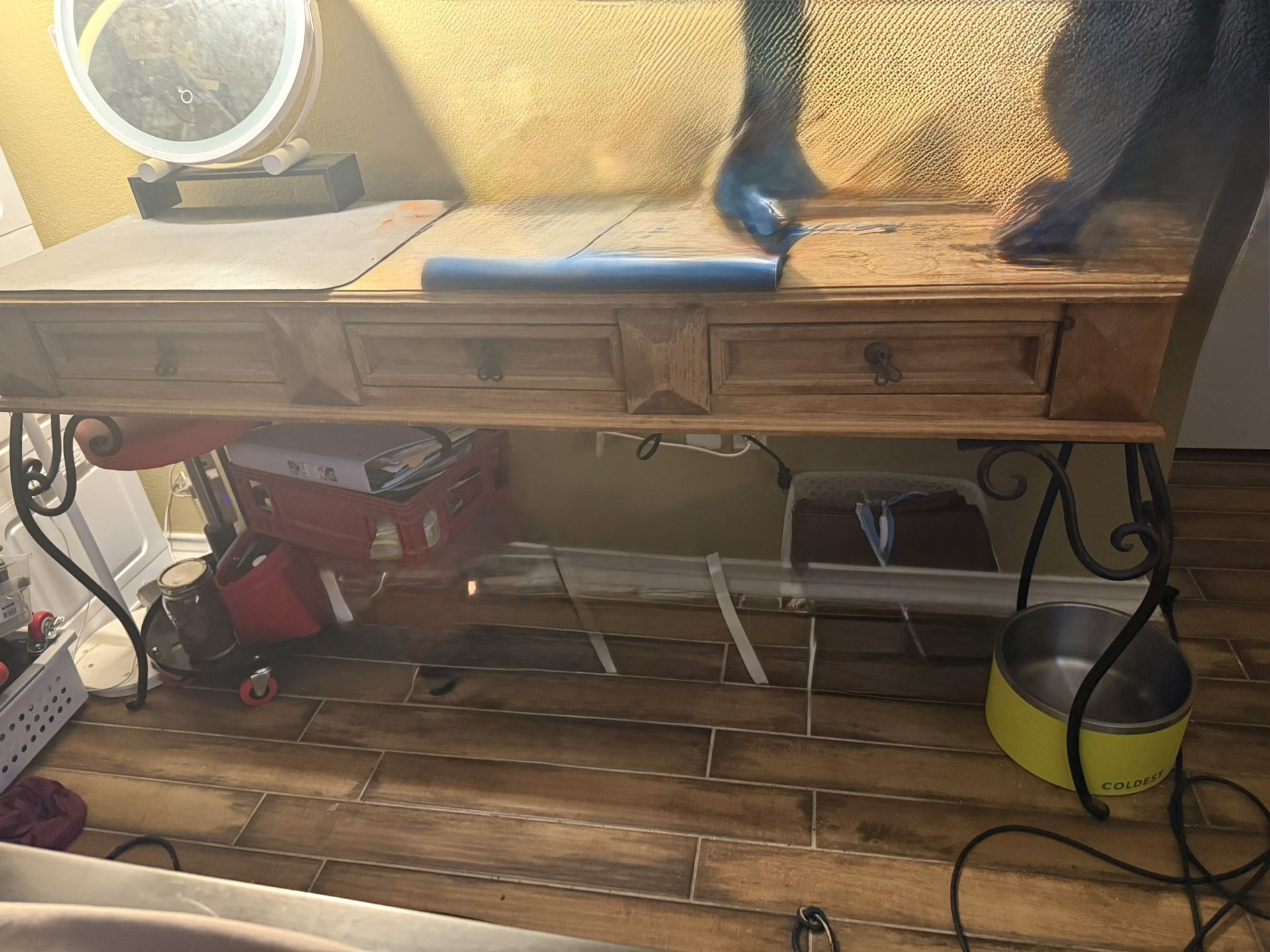 Wood with iron legs 3drawers