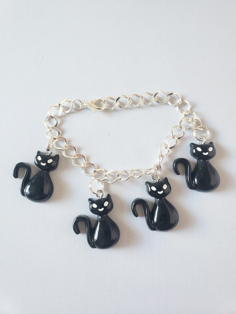 Retro 80s silver Halloween 4 black kitty cat๐ฑ ๐ link chain charm bracelet link I can combine shipping with other items let me know before you purchase and I'll update the listing for you. Thank you for looking.ย Have a great day!! #alexandani #pandora #tiffanys