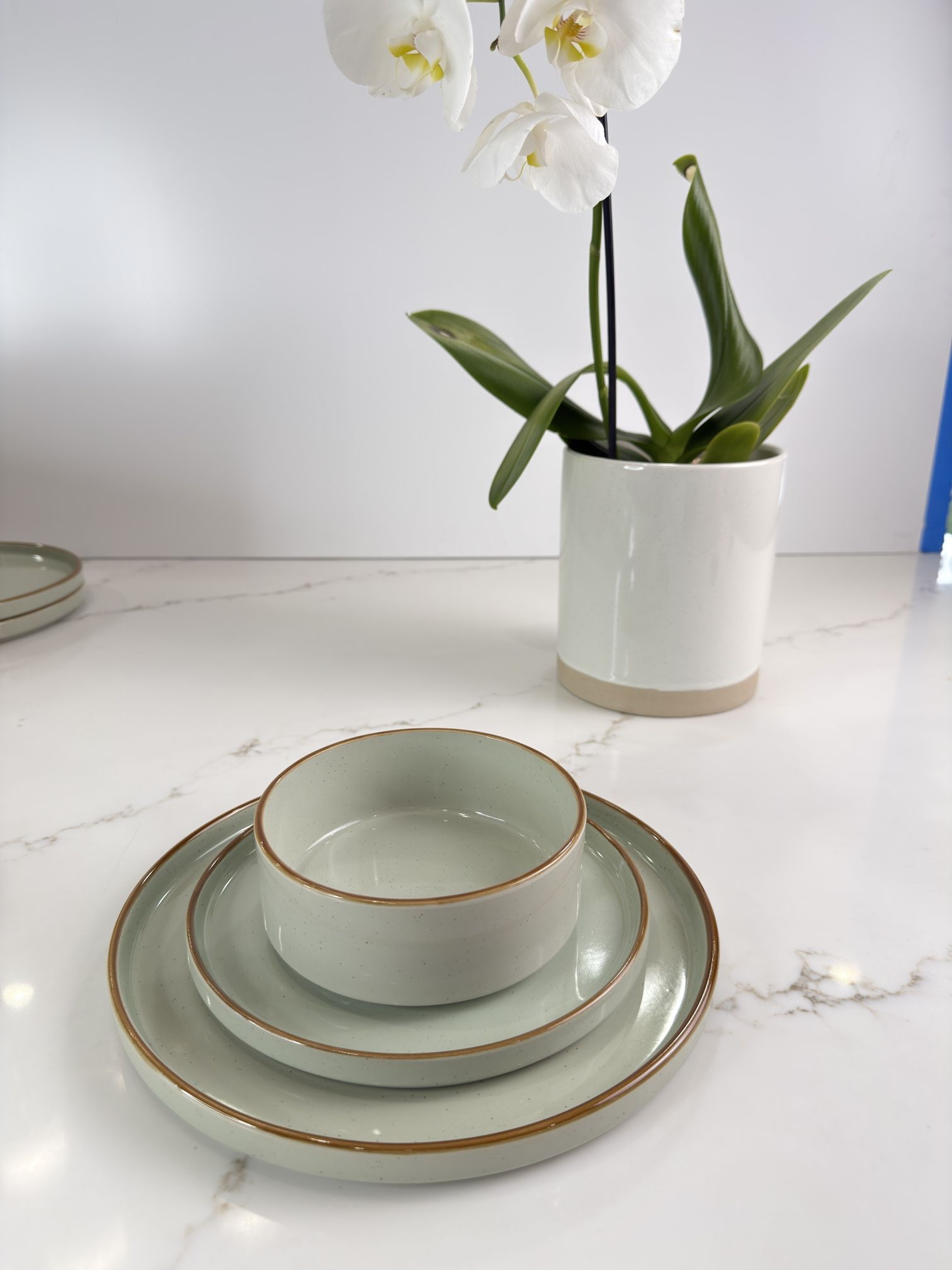 Brand new stoneware dinnerware set for 4. Includes 12 pieces plates and bowls. Original price $70 now only $25. Multiple colors available. You can choose from our shelf or tell me which color you want. Pickup in Chino.