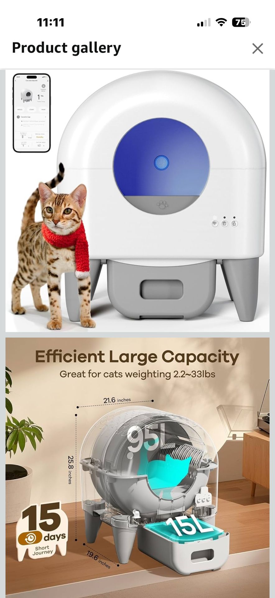 Automatic Cat Litter Box Self Cleaning Litter Box Large Capacity for Multiple Cats, App Control with Safety Sensors, Removable Washable Liner,2 Rolls Garbage Bags,Grey