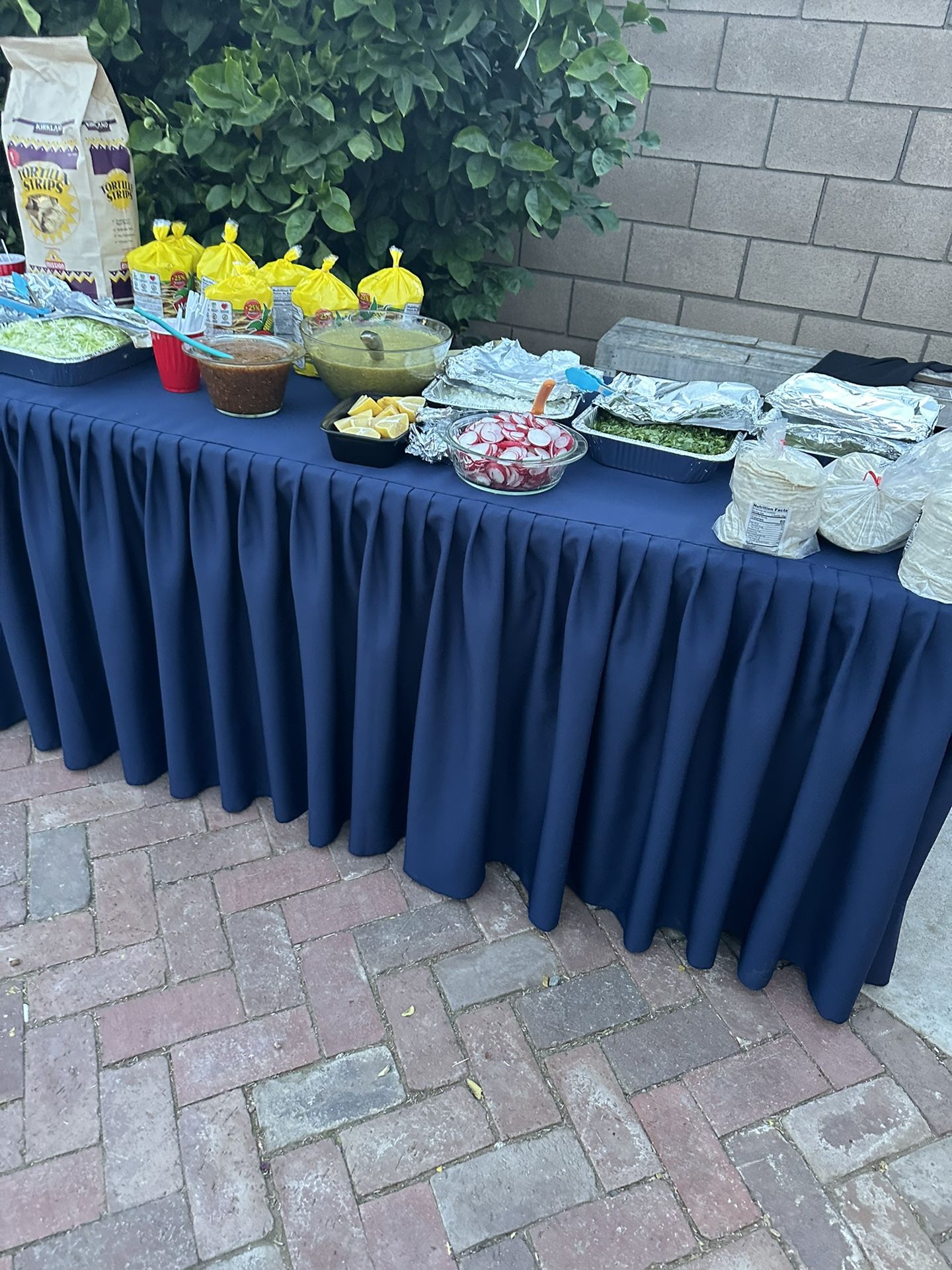 Tenemos manteles redondo rectangular, con faldón, disponibles para sus eventos todo tiene precio diferente, estamos en Moreno valley cualquier pregunta estamos para servirle