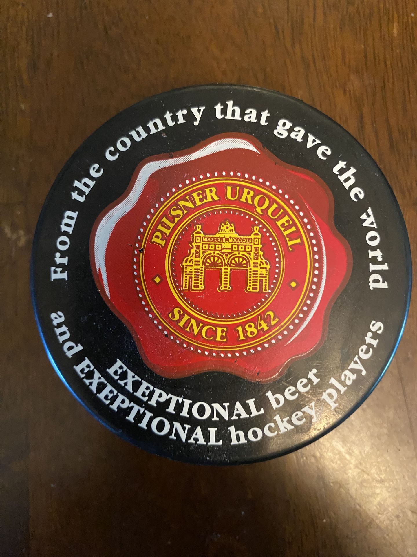 Pilsner Urquell beer promotional hockey puck. Collectors item or just use it & have fun!🤷♀️