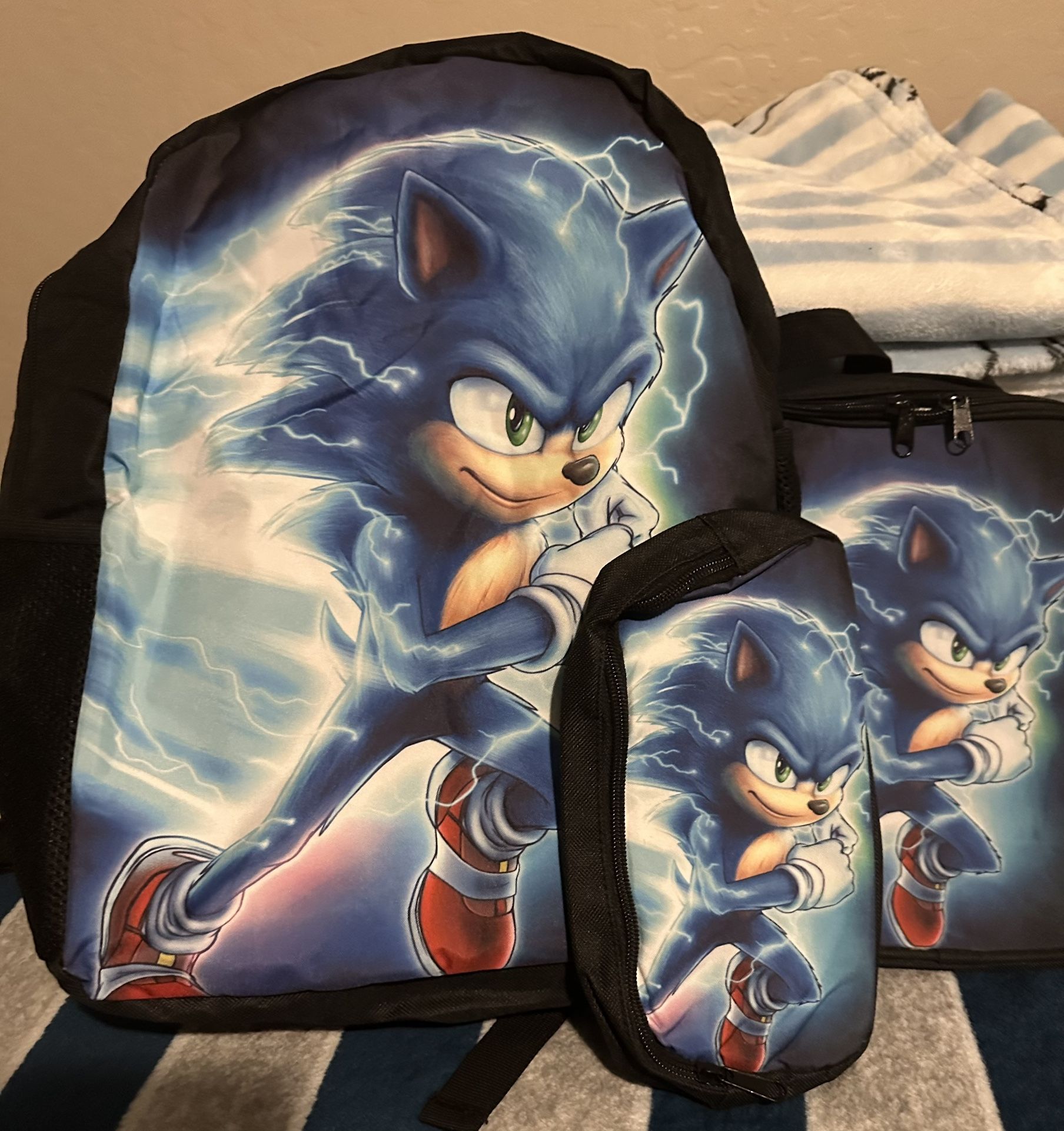 Backpack, lunch bag, and pencil bag Sonic, Bluey, and Among US