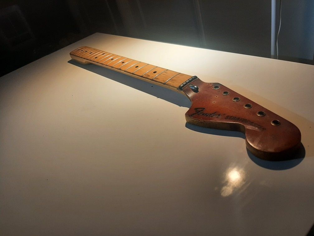 This is a vintage neck off of 70'S Model strat it is pre-owned shows some normal ware but has no cracks I took a lot of pictures if your interested please make and offer I know one thing and it is that these necks hold some value . I have done my best in trying to get as much info about it as possible so if you have any other questions please feel free to ask .