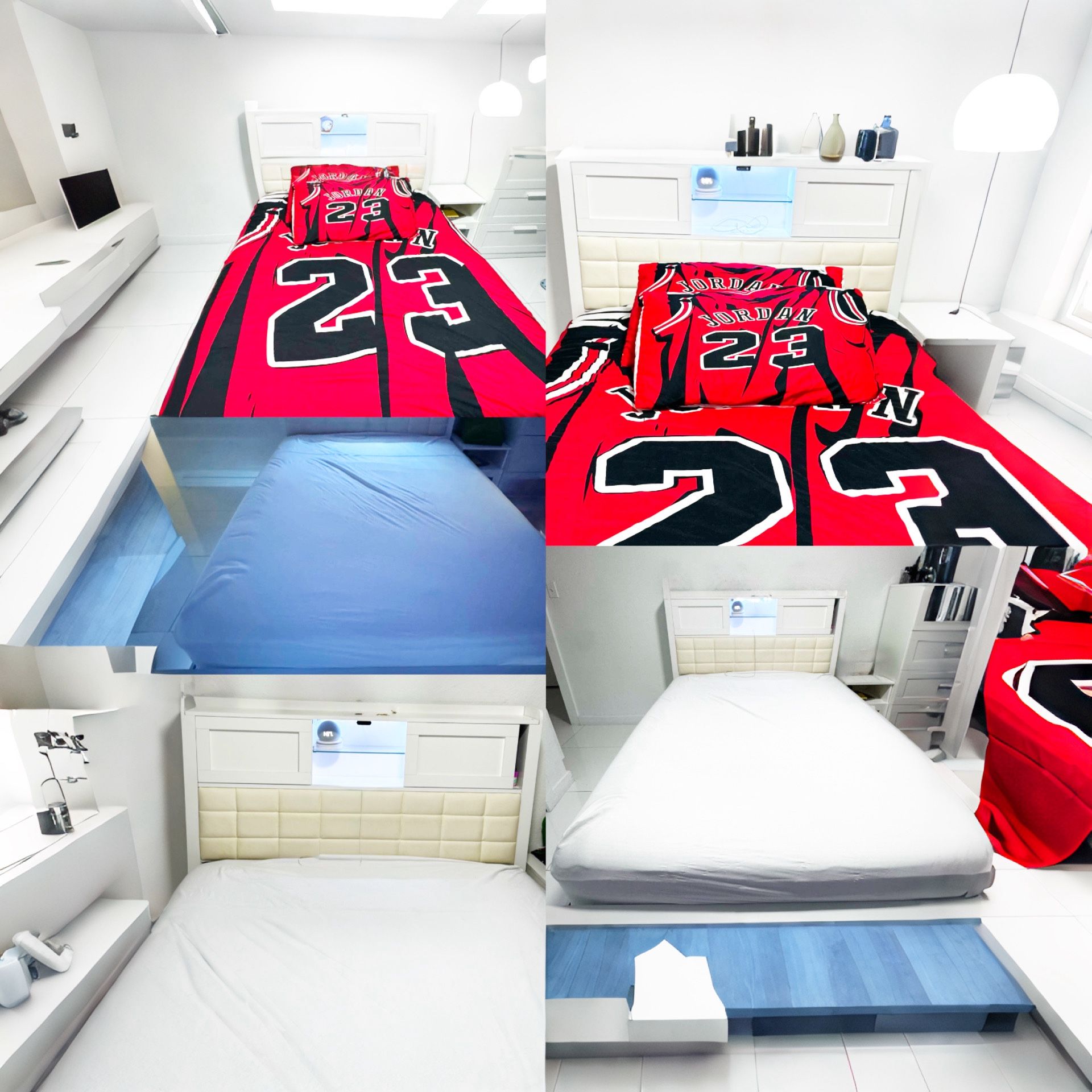 Cama con colchón incluido, tiene un año de uso, la estoy vendiendo porque el niño no me cabe ya en ella. El colchón tiene su cover protector, el cual ha facilitado que no se haya manchado ni se haya dañado confiable para uso de un niño por la higiene que tiene