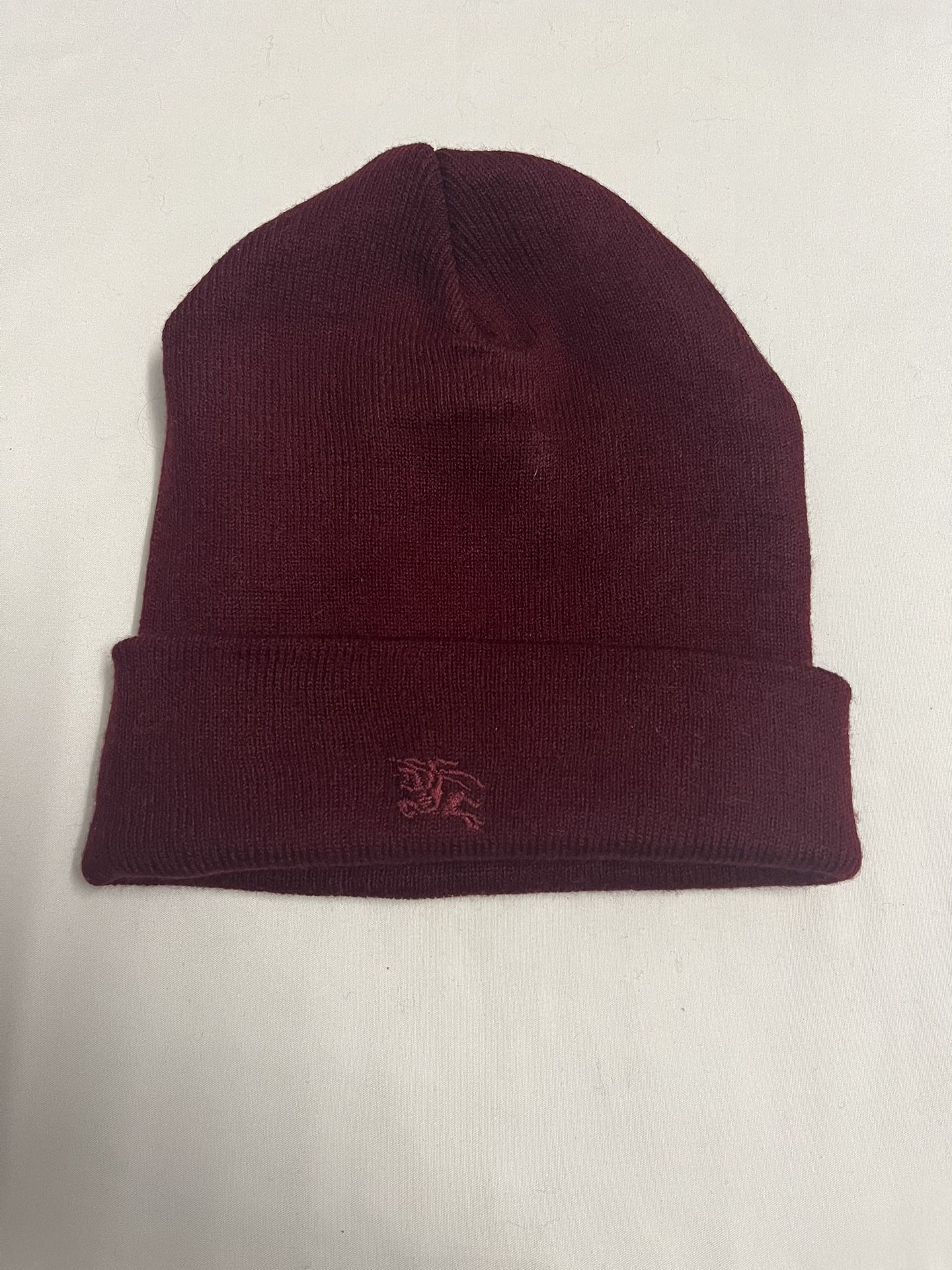 This vintage maroon Burberrys beanie is a classic and stylish addition to any wardrobe. Made from lightweight and breathable lambswool knit fabric, this one-size-fits-all hat features a solid pattern and a comfortable stretch. Perfect for men who love vintage fashion and appreciate the quality craftsmanship of a United Kingdom made accessory. The beanie is also adorned with a Burberrys logo for a touch of sophistication and style. It's a great accessory for any occasion, whether you're heading to work or out for a casual weekend brunch with friends.