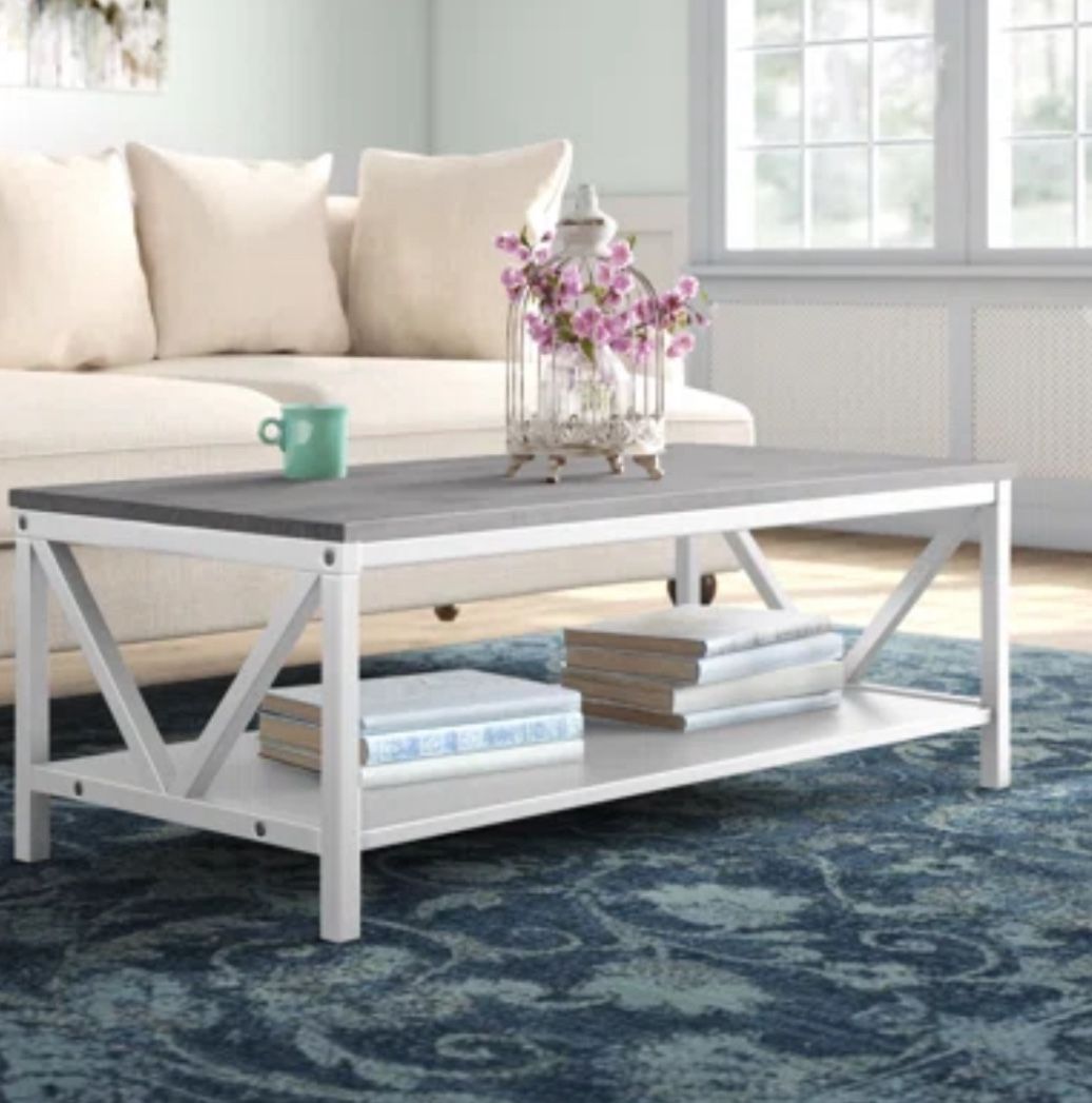 New Rustic Grey & White Coffee Table New In The Box/Excellent Condition! Dimensions: 48"W x 24"D x 18"H Durable Solid Wood Design with Lower Shelf for Storage Last Picture is only for you to see what it looks like! CT26