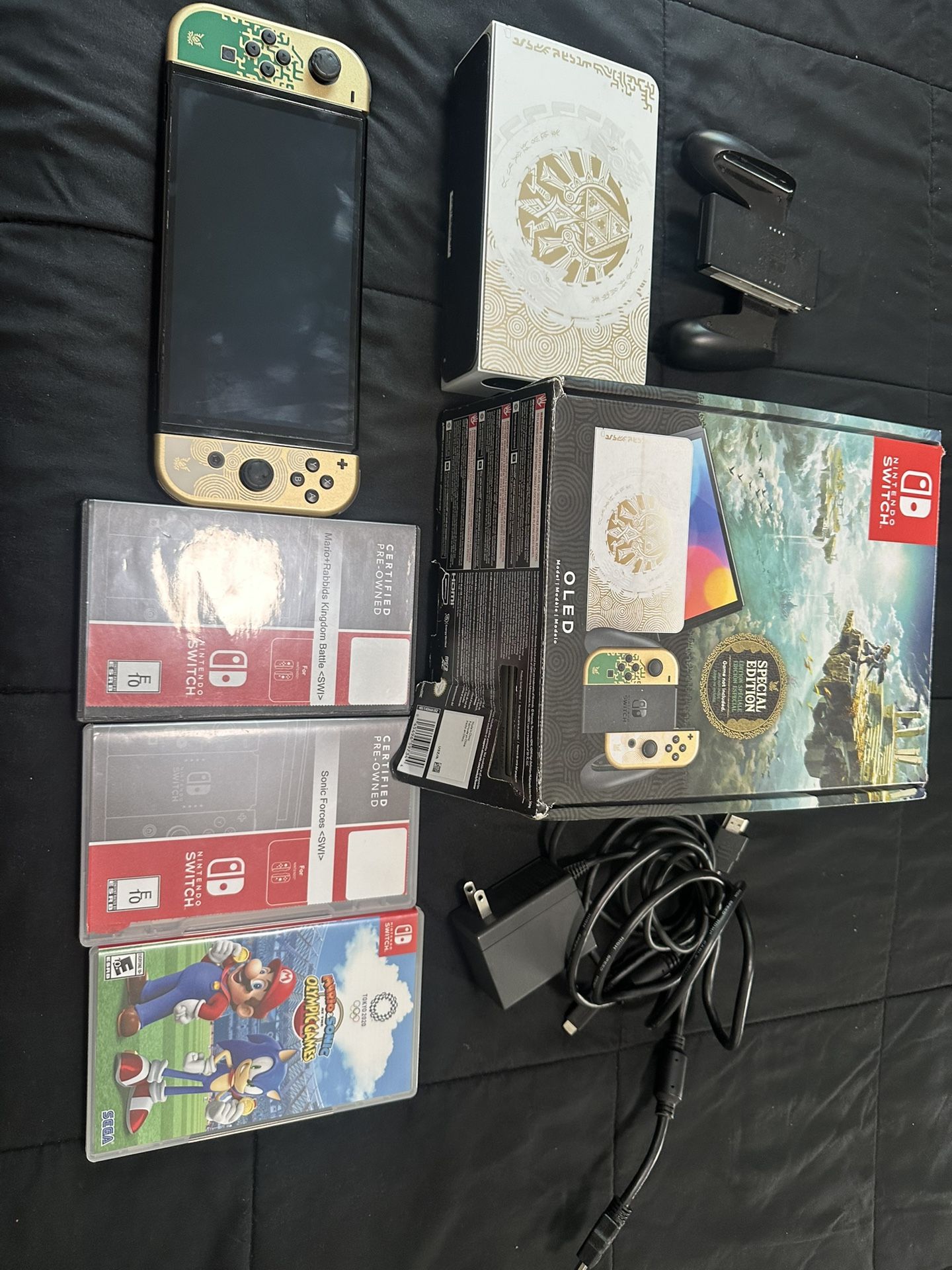 Nintendo switch oled Comes with all original accessoriesy and box Zelda tears of the kingdom Super smash bros Mario kart deluxe 8 Mario plus rabbids Mario and sonic olypics Sonic forces