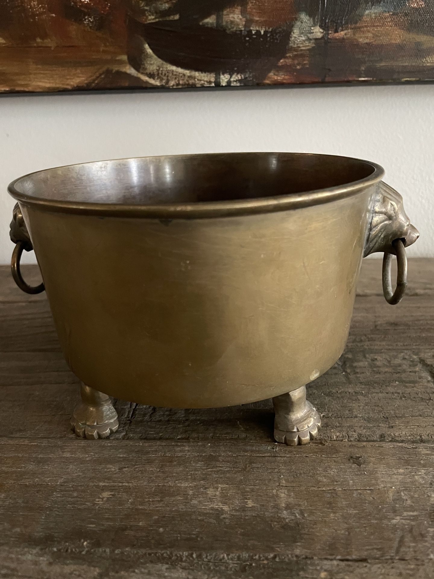Antique footed brass pot