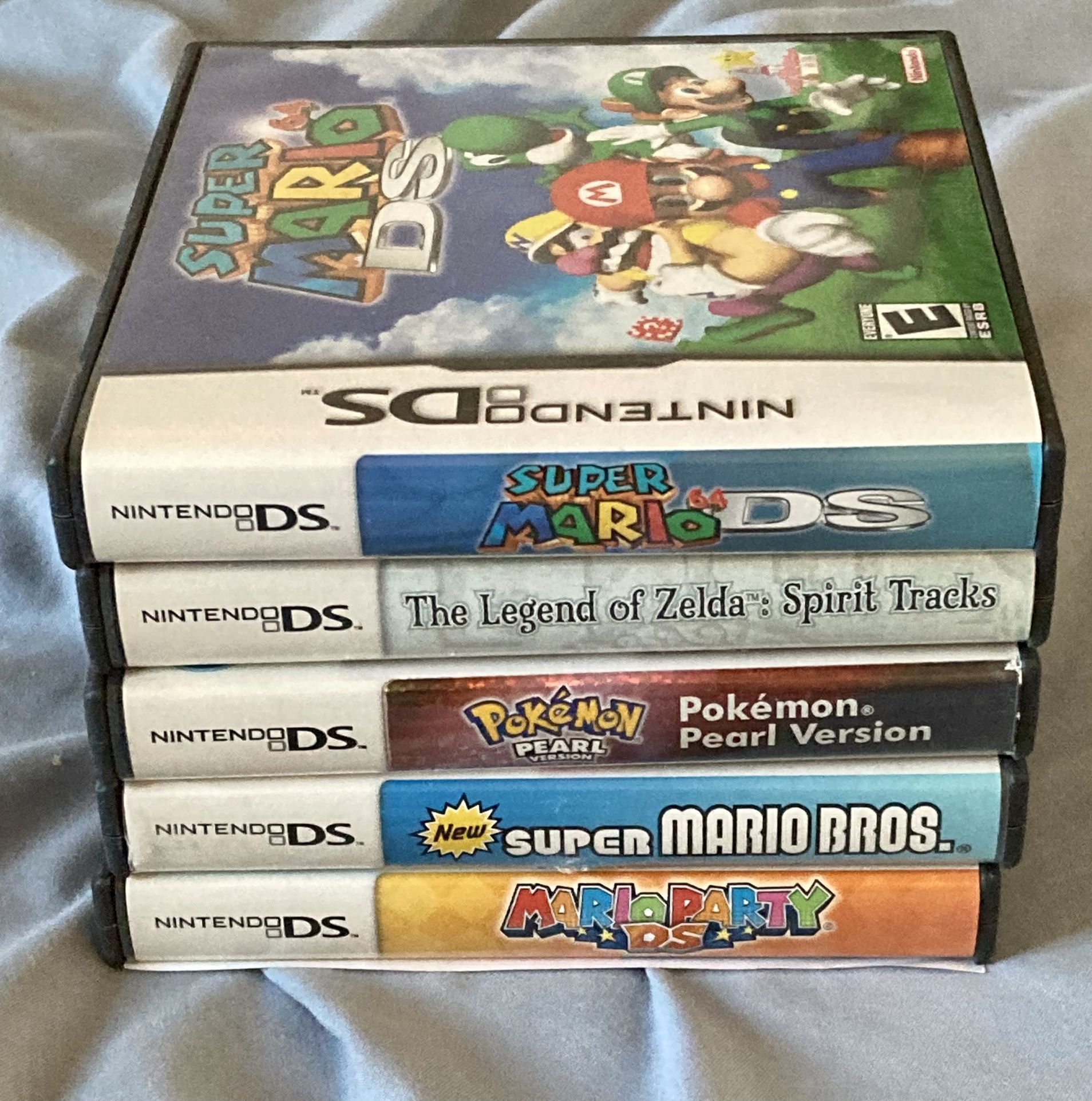 Hi, putting up my old Nintendo DS cases for; The Legend of Zelda:Spirit Tracks Pokemon Pearl Super Mario 64 DS New Super Mario Bros Mario Party DS All the cases have their manuals except for Pearl and new Super Mario Bros. There’s no game. If you have any questions, please feel free to ask. Thank You
