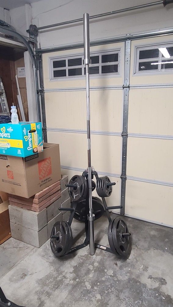 Selling this barbell and weights we no longer need. 45lb barbell and 255lbs of iron plates - 2x45, 2x35, 2x25, 2x10, 4x5, 2x2.5lbs. $350 obo