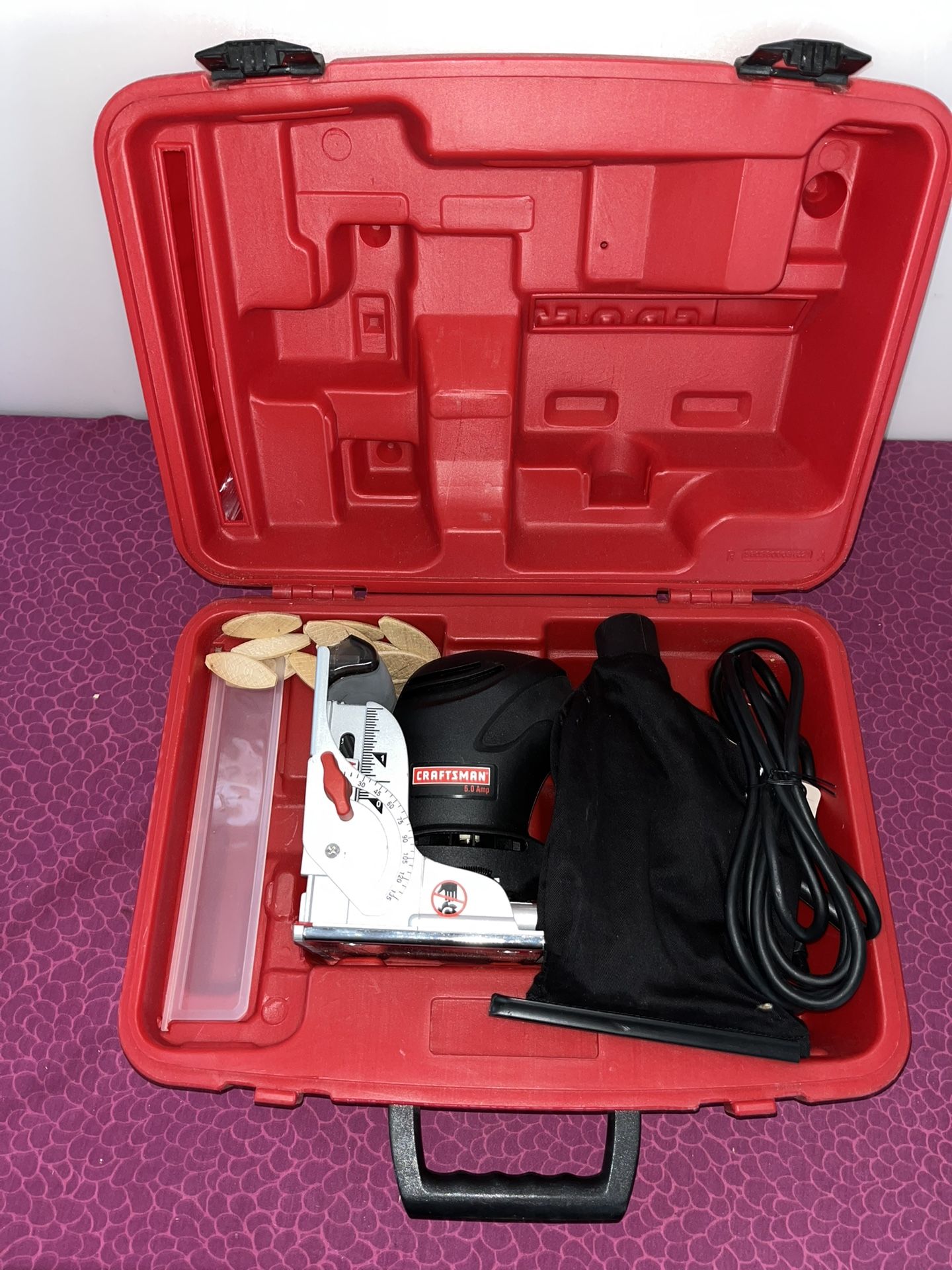 * Never used. * No box or papers * Questions welcomed! The CRAFTSMAN (contact info removed)90 BISCUT JOINER is a power tool designed for joining wood pieces together with precision and ease. With a voltage of 110V, this biscuit/plate joiner from Craftsman is reliable and efficient for various woodworking projects. The model number (contact info removed)90 ensures that you are getting a high-quality and durable tool from a trusted brand. Perfect for both professionals and DIY enthusiasts, this joiner is a must-have for any workshop or tool collection we.