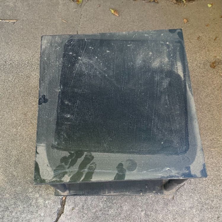 Side Table X 2 IKEA design. 1 has a rough corner. Dusty/Dirty, needs a good cleaning, but will be cleaned before pick up. Has been setting in storage for over a year. local delivery available for an additional fee. All offers will be considered!