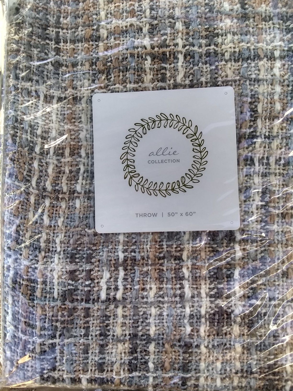 New 50" x 60" Throw blanket by Allie Collection Grey/Light blue finish in acrylic fabric for $7 only.