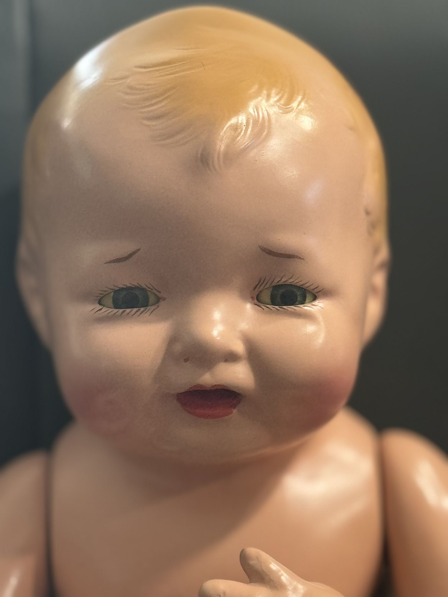 Vintage Effenbee Bubbles doll.. Absolutely beautiful doll and I hate getting rid of her but due to financial situation right now I need to sell her and I will sell her for what I paid for her .. She is in excellent condition for her age I believe she’s from 1921 .. She comes with her original dress, and she has one small crack on her head.. please look at all pictures as they are part of the description also .. I don’t know a whole lot about her as I just bought her because I loved her and she’s only been displayed in a glass case… If you have any questions, feel free to ask and I will do my best on answering all of them and thank you!! Local pick up only!! Rio Rancho NM $300 or best offer