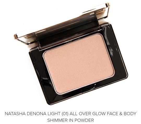 NEW IN BOX. LUXURY MAKEUP. DISCONTINUED. FULL SIZE .35 Oz. SMOKE FREE HOME. This Natasha Denona All Over Glow face & Body shimmer in powder is in the shade 01 light/clair (a light, golden beige w/ soft, warm undertones and a luminous finish). Opaque color coverage, the texture is soft and yielding, so it can easily be applied with a lighter hand for sheerer coverage. The finish is glowing without being metallic or overtly shimmery--very "skin-like" and doesn't emphasize natural texture. The consistency is smooth, dense without being too firmly pressed in the pan, and easy to work with. The powder applies evenly and blends out effortlessly. It can stay on well for eight and a half hours before fading noticeably.