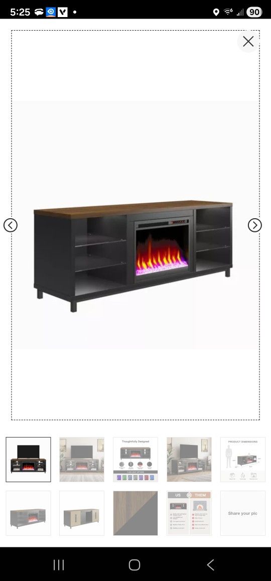 Beautiful Fireplace TV Stand With remote- black with walnut top