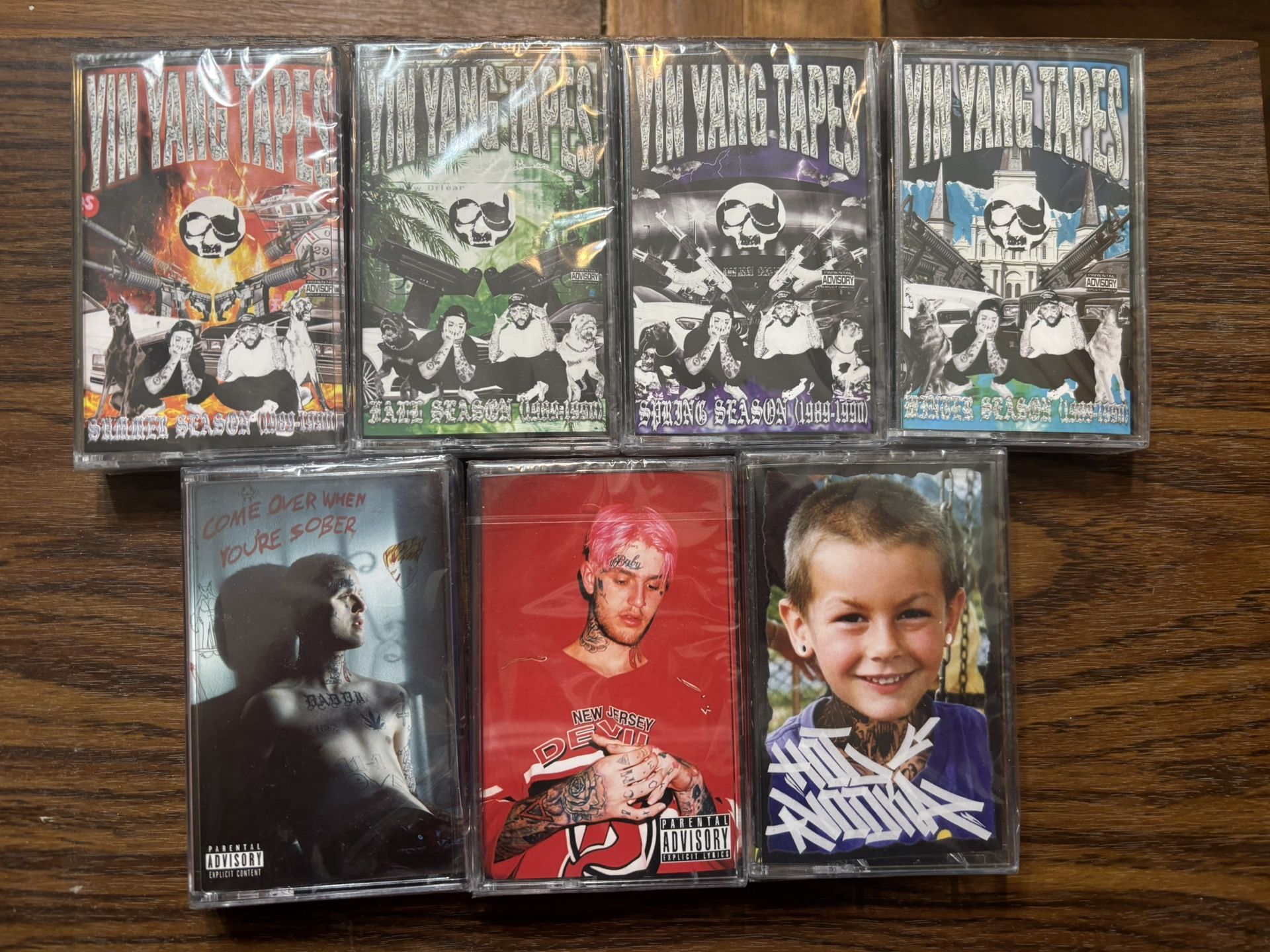 All tapes sealed $B- All four Yin Yang Tapes(Summer & Winter Season have cracks on the shell. Courtesy of Amazon) Lil Peep- CHWYS Part 2 & Hellboy Terror Reid- Hot Vodka Will deliver for a fee. Comes with the 59 bills & FTP sticker Thanks for looking ๐ค๐ผ
