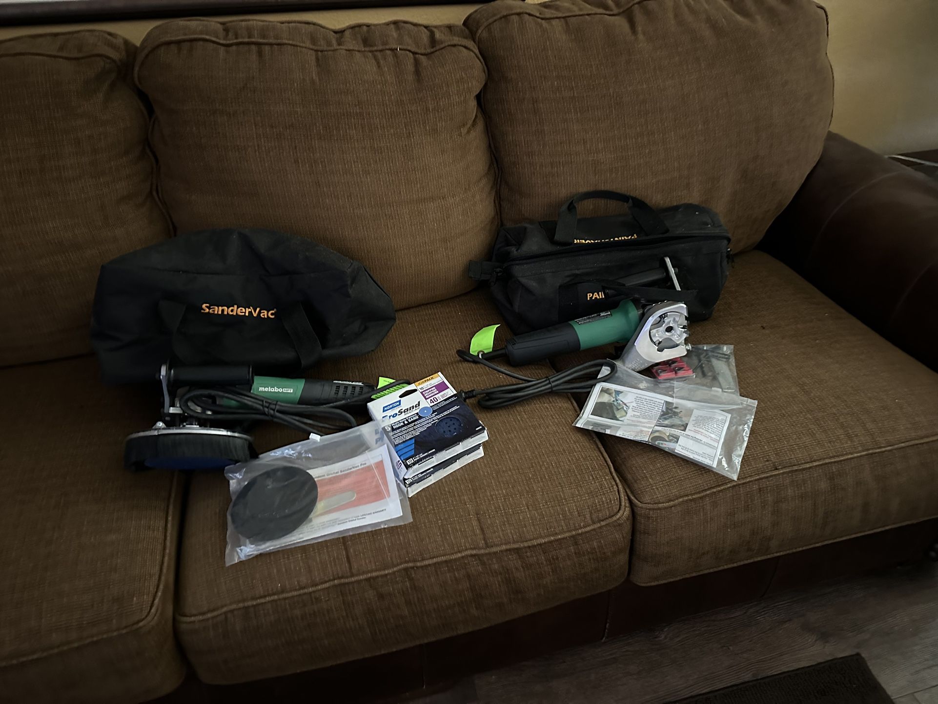 Brand new, never used 12 amp paintshaver pro and sander with hose and nylon bags. Paid almost $1600 with tax and shipping. $1300 Watch paintshaver pro videos on YouTube to see how it works.