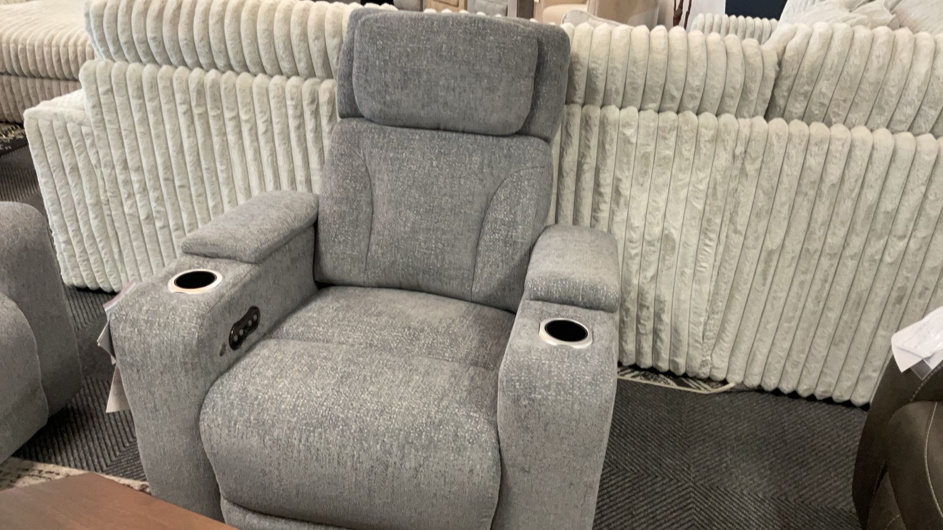 Blue/ Grey Material Electric Recliner With Console Cupholders LEDs And USB Plug Ins