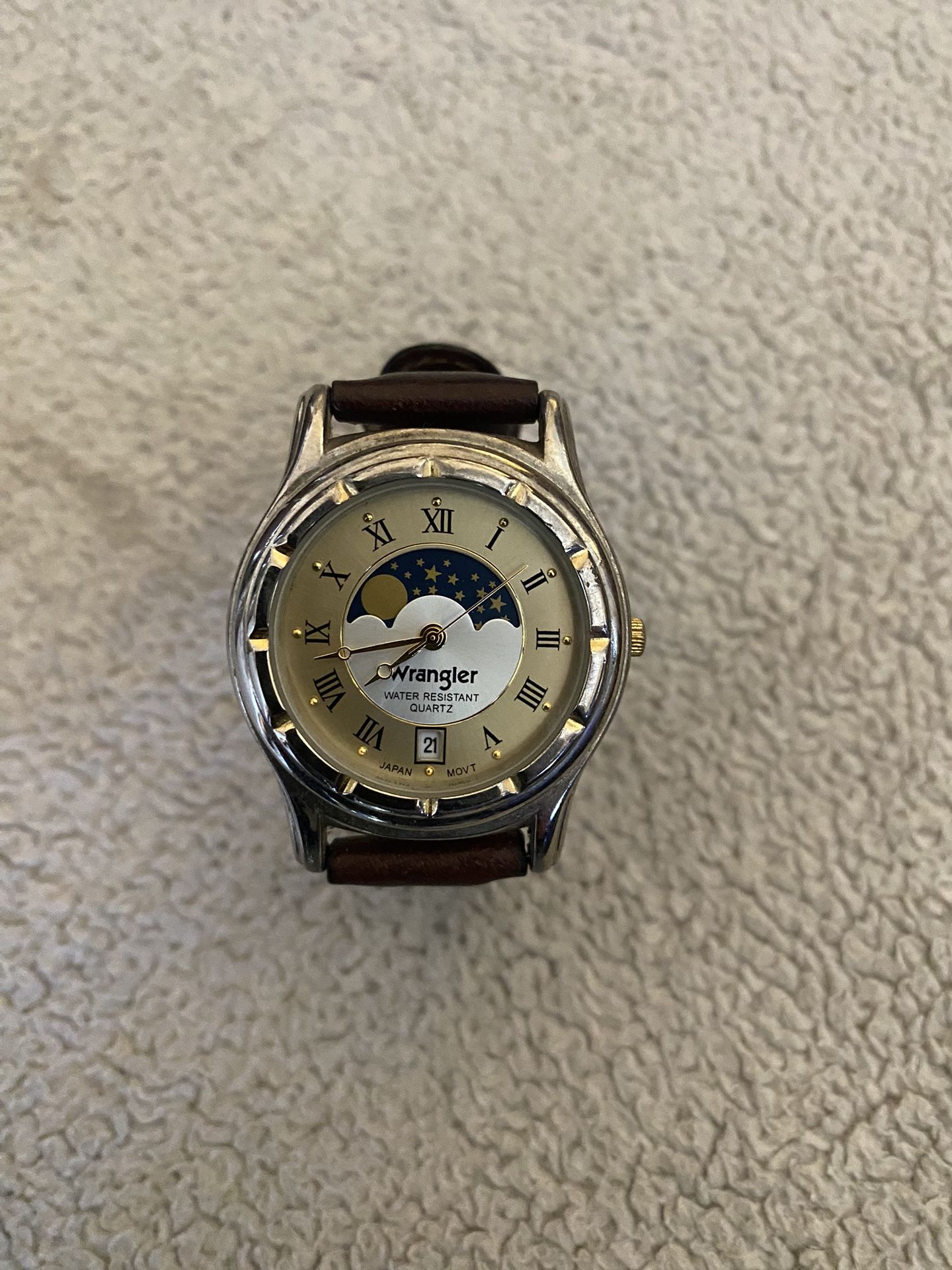 Vintage Moon Dial Hero Watch By Wrangler Great Shape Like New