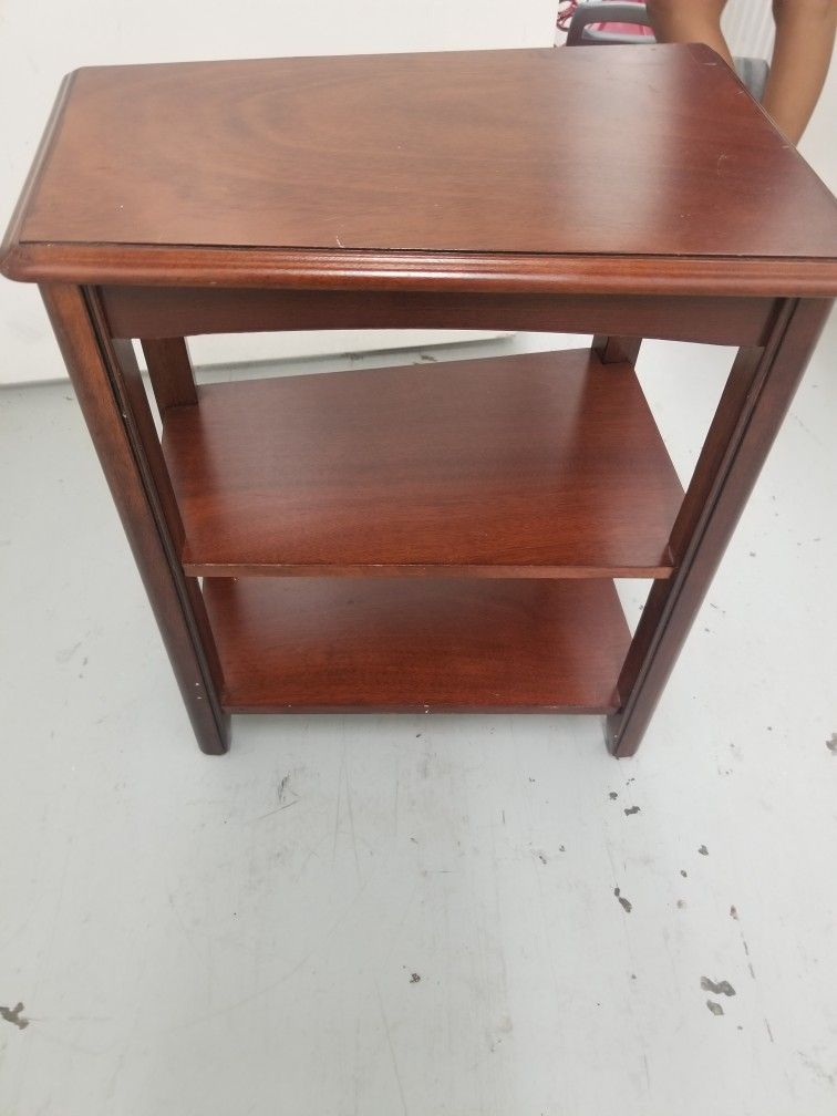 Nice small solid wood shelf/nightstand like new asking 40$ OBO About 2 feet tall and 1 foot wide