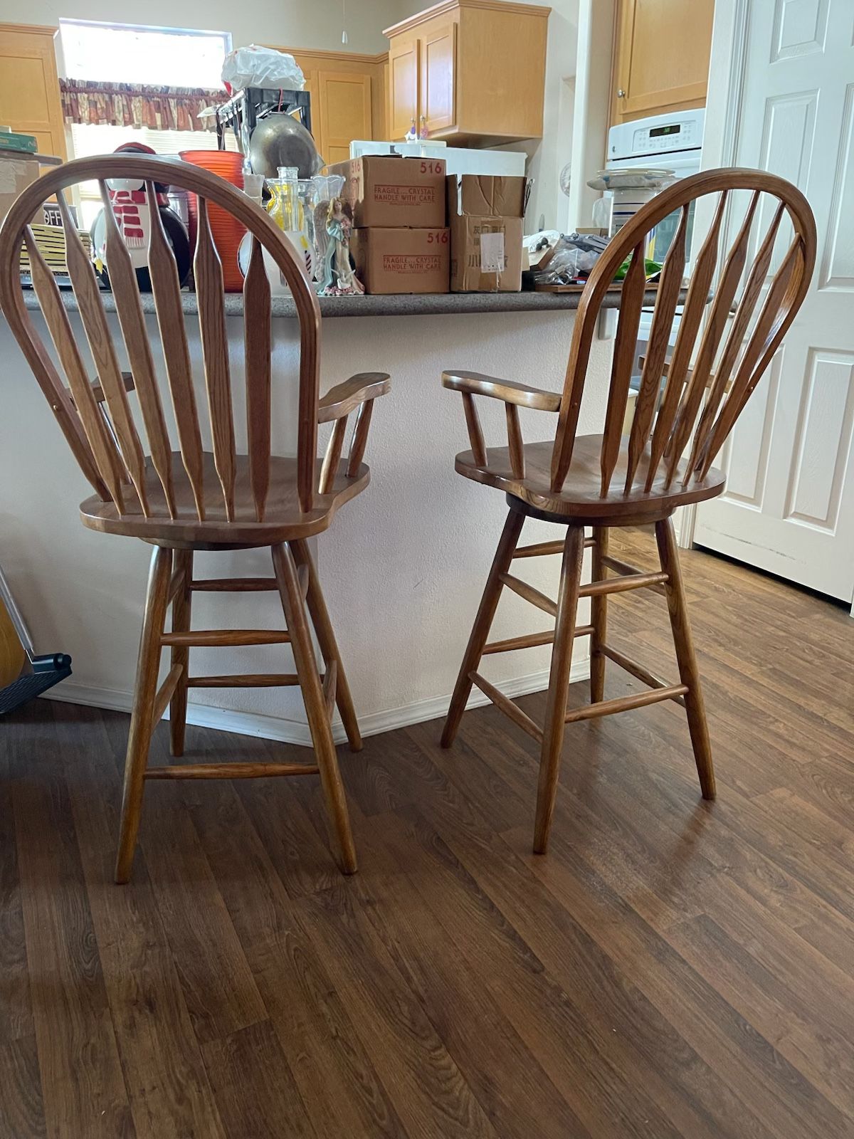 Oak Back Swivel Counter Height Bar Stool Dimensions: 18.5”X53”X14” *The height is the total height of the stool from floor to the top of the back of the stool. Pick up ONLY Will take best offer