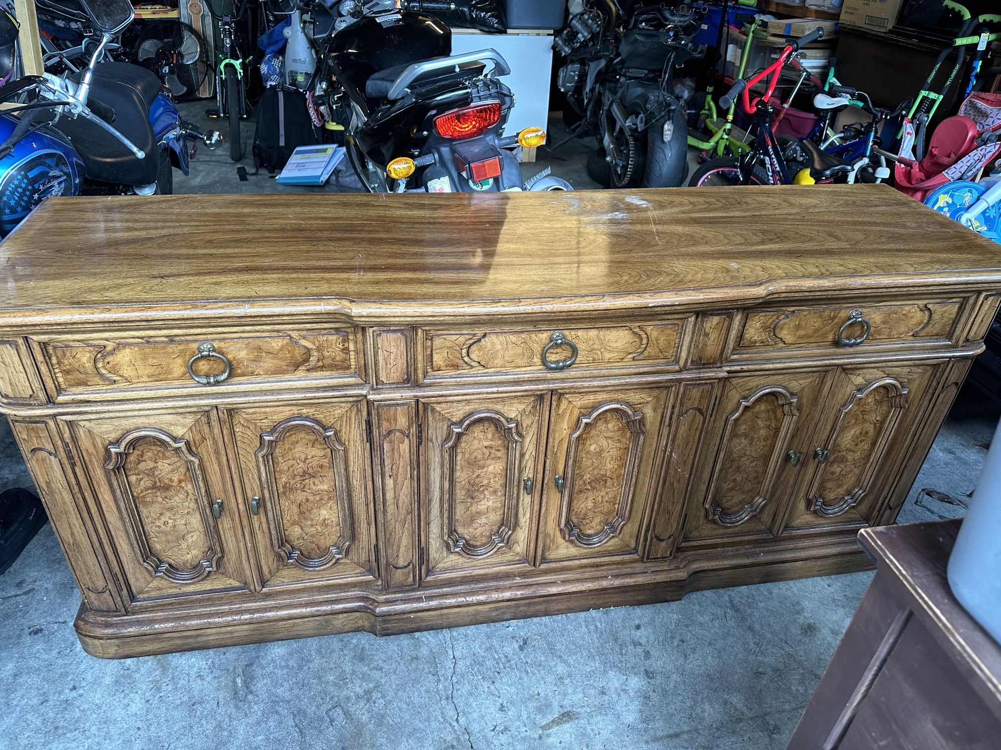 Thomasville Buffett. Rather large and heavy. Measurements to follow. Slight discoloration on the top wood. Otherwise in great shape.
