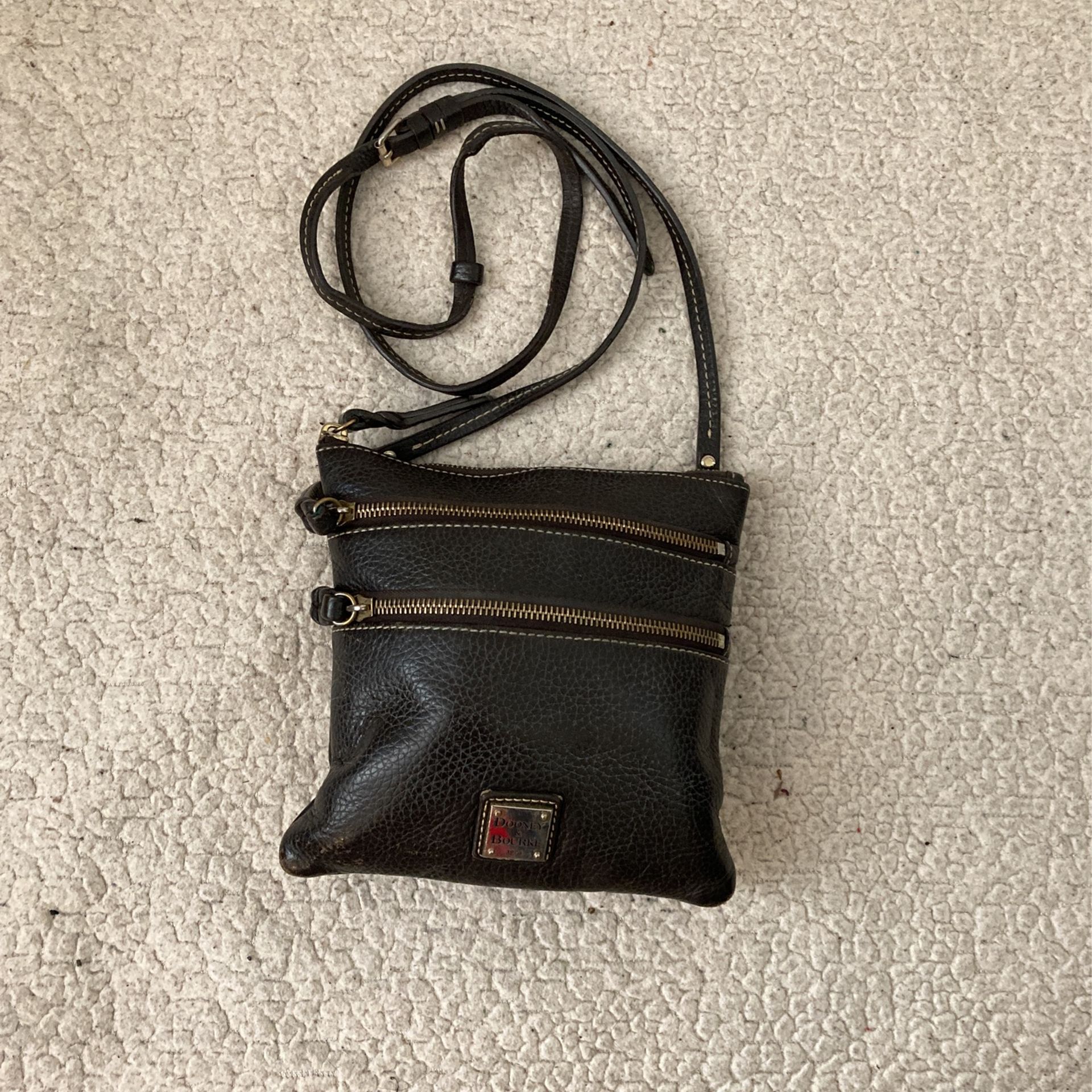 Black pebble leather with 2 outside pockets red inside crossbody Dooney chevron