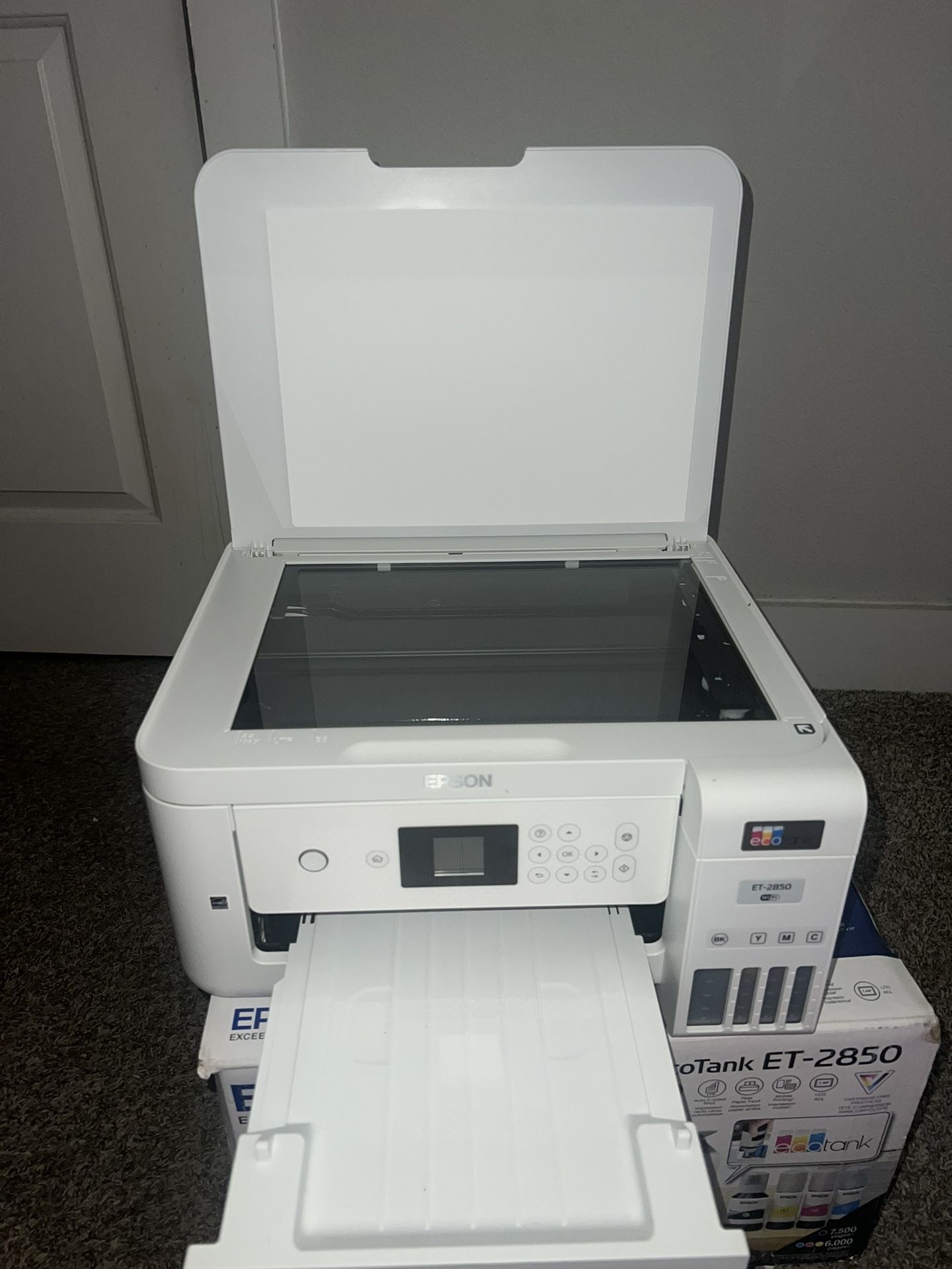 Bought a couple months ago used maybe 3 times , great condition! I’ve already set it up, ink filled to the top, I’ve printed about 8 pages myself and The quality is great. Easy to use this printer gave me absolutely no problems . Box a little damaged it’s been sitting about 4 months ! Pickup and delivery available. Alief/Mo city (77036) (77459)