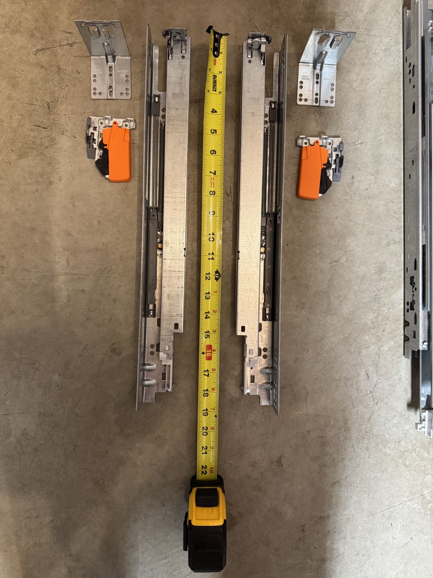 Three complete sets of Undermount full extension drawer slides with soft close. These are ideal bathroom cabinets or garage cabinets with 18” deep drawers. Each set is $25. All 3x sets (3 drawers) for $60. These are new and excess from a recent cabinet project.