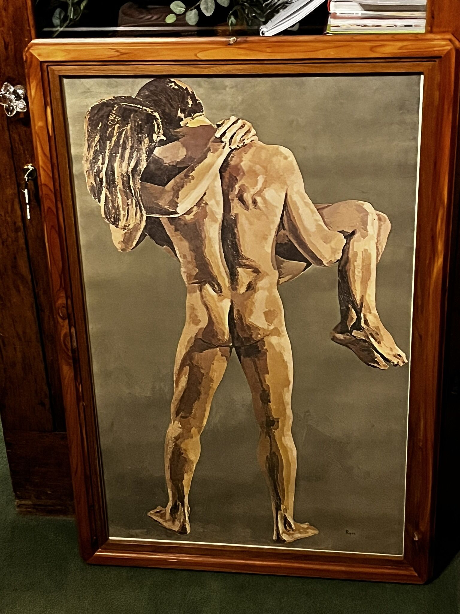This is a beautiful handmade frame and romantic art for any bedroom or other setting. 22"x32"