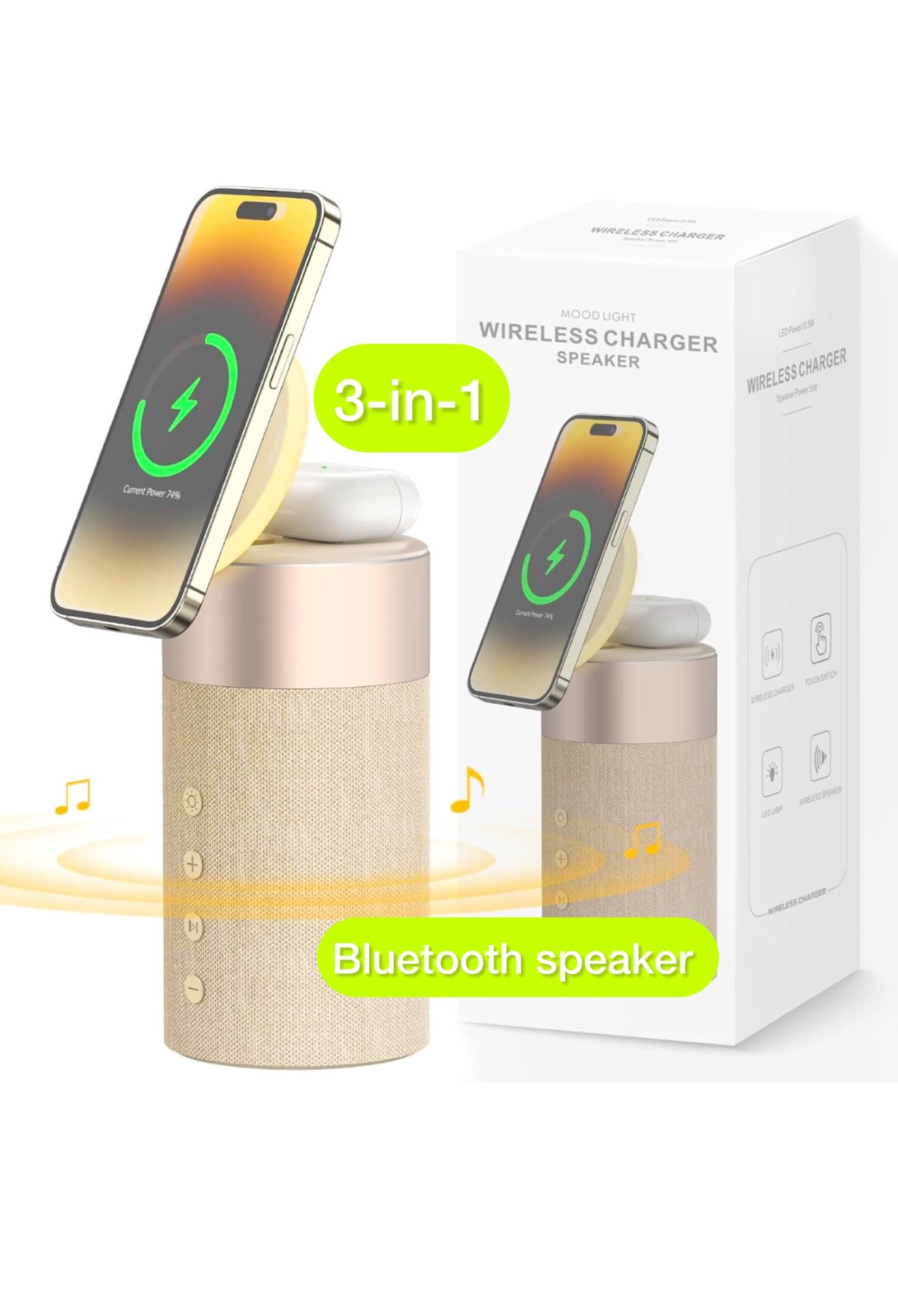 COLSUR Bluetooth Speaker, Magnetic Wireless Charger, Bluetooth Speakers With Night Light, 2 In 1 Wireless Charging Station For IPhone, Perfect 4 Gift